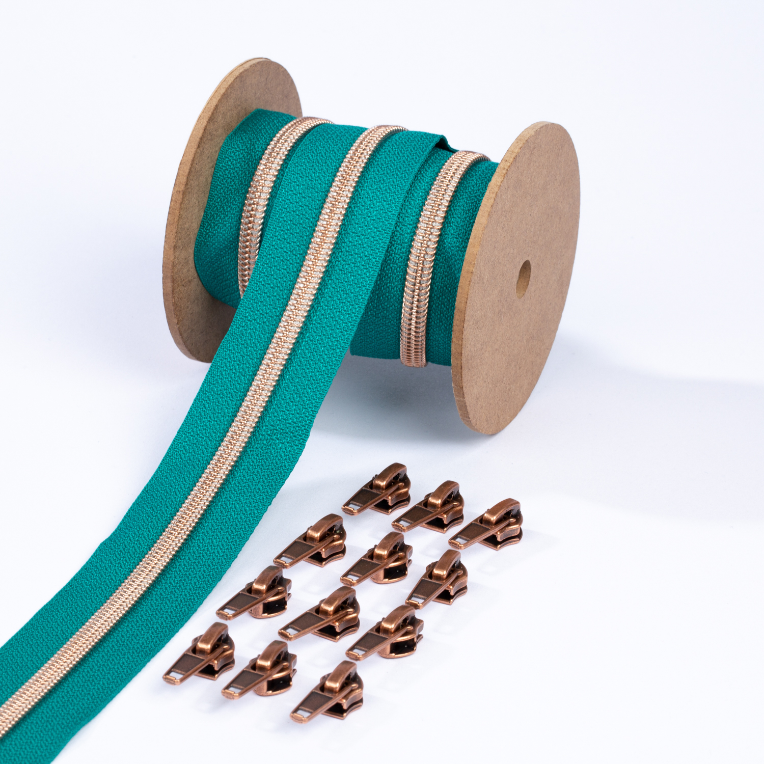 Metalliserat blixtlås i koppar 6,5mm pärla | 3m | Mörkt turkos