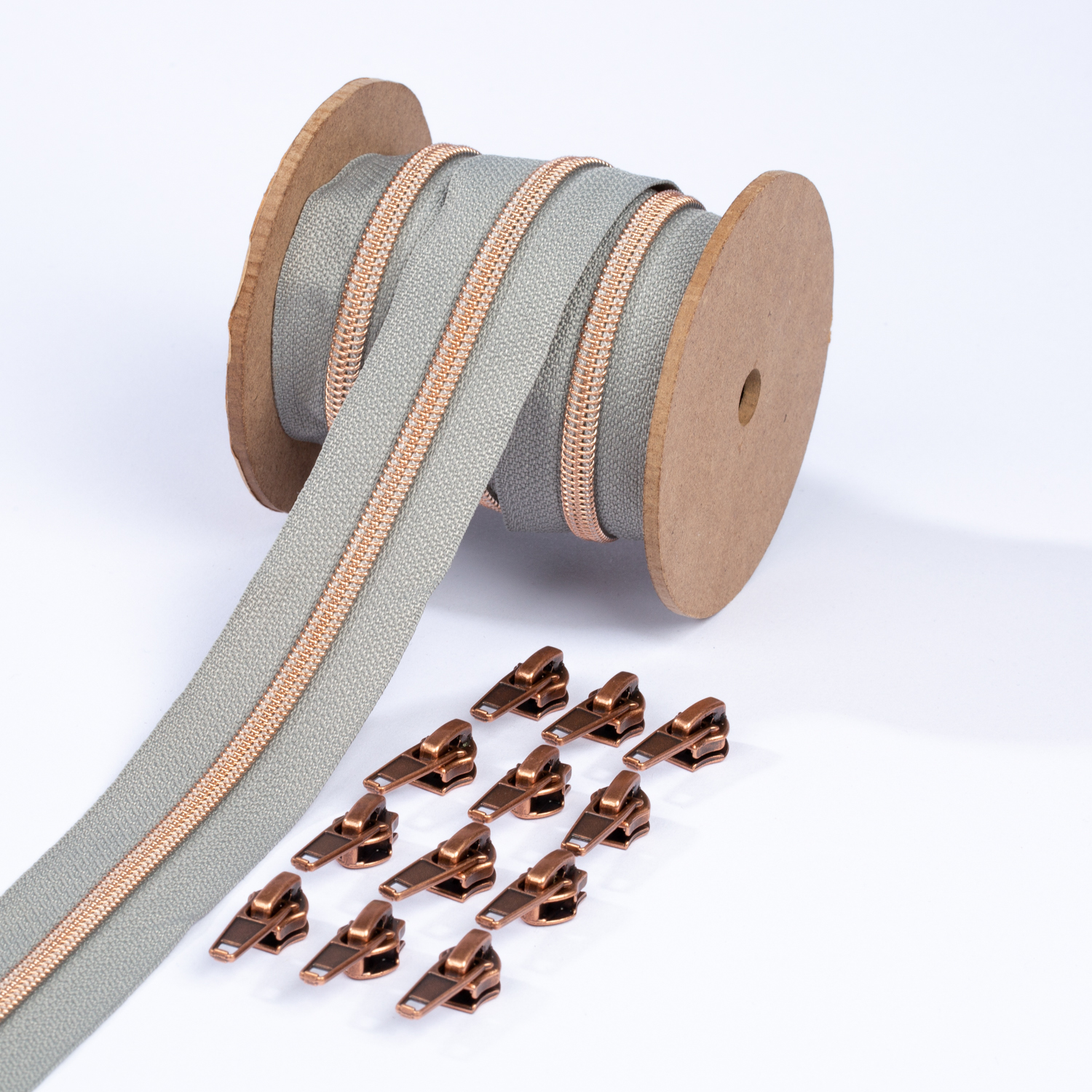 Metalliserat blixtlås i koppar 6,5mm pärla | 3m | musgrå B24