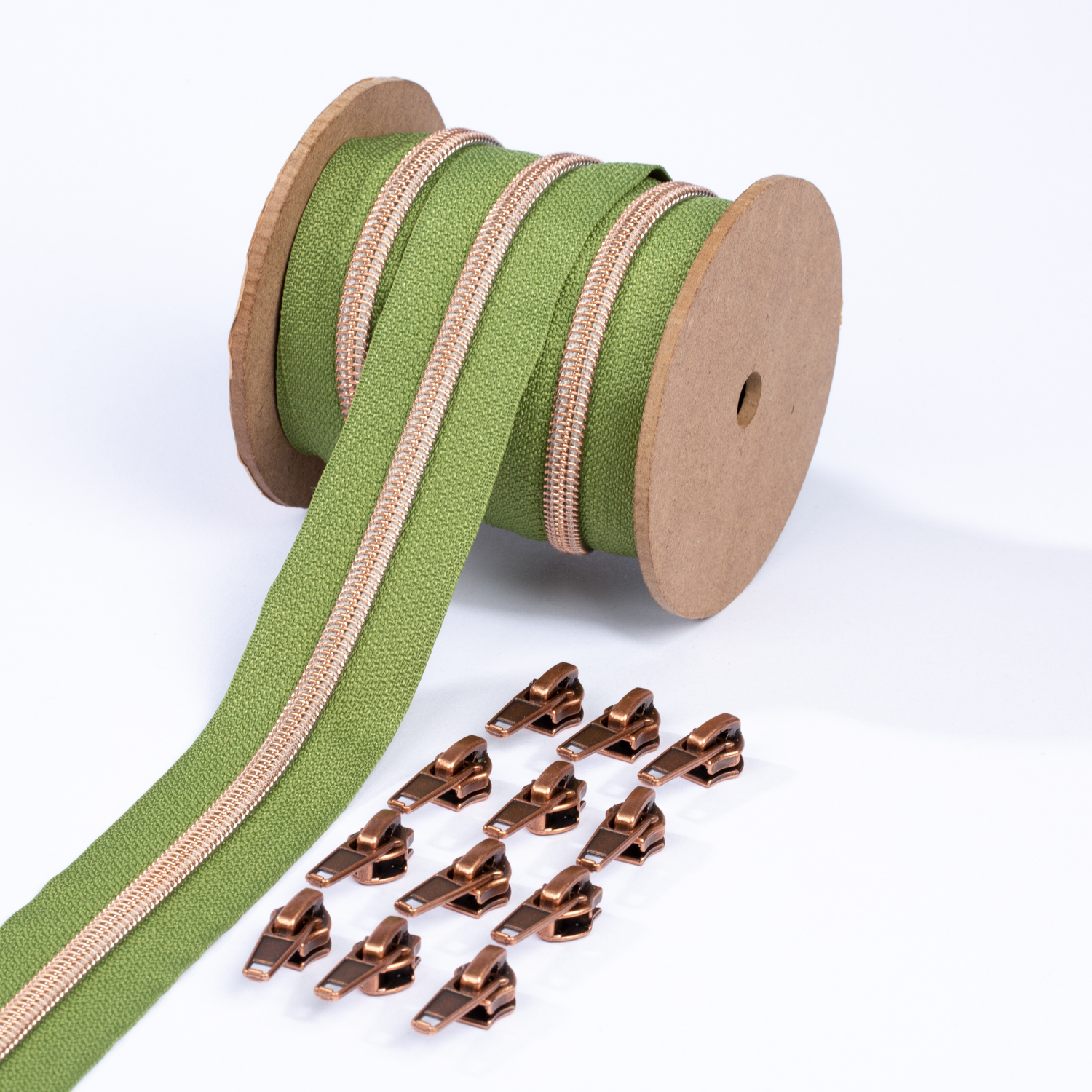 Metalliserat blixtlås i koppar 6,5mm pärla | 3m | oliv
