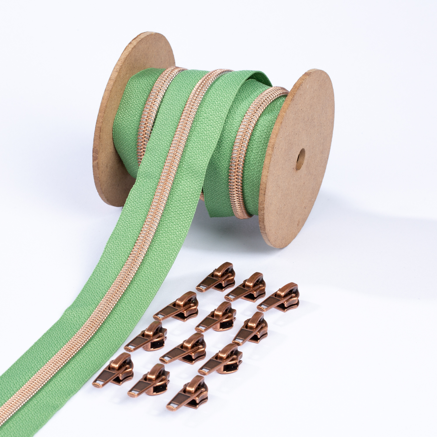 Metalliserat blixtlås i koppar 6,5mm pärla | 3m | salvia D100