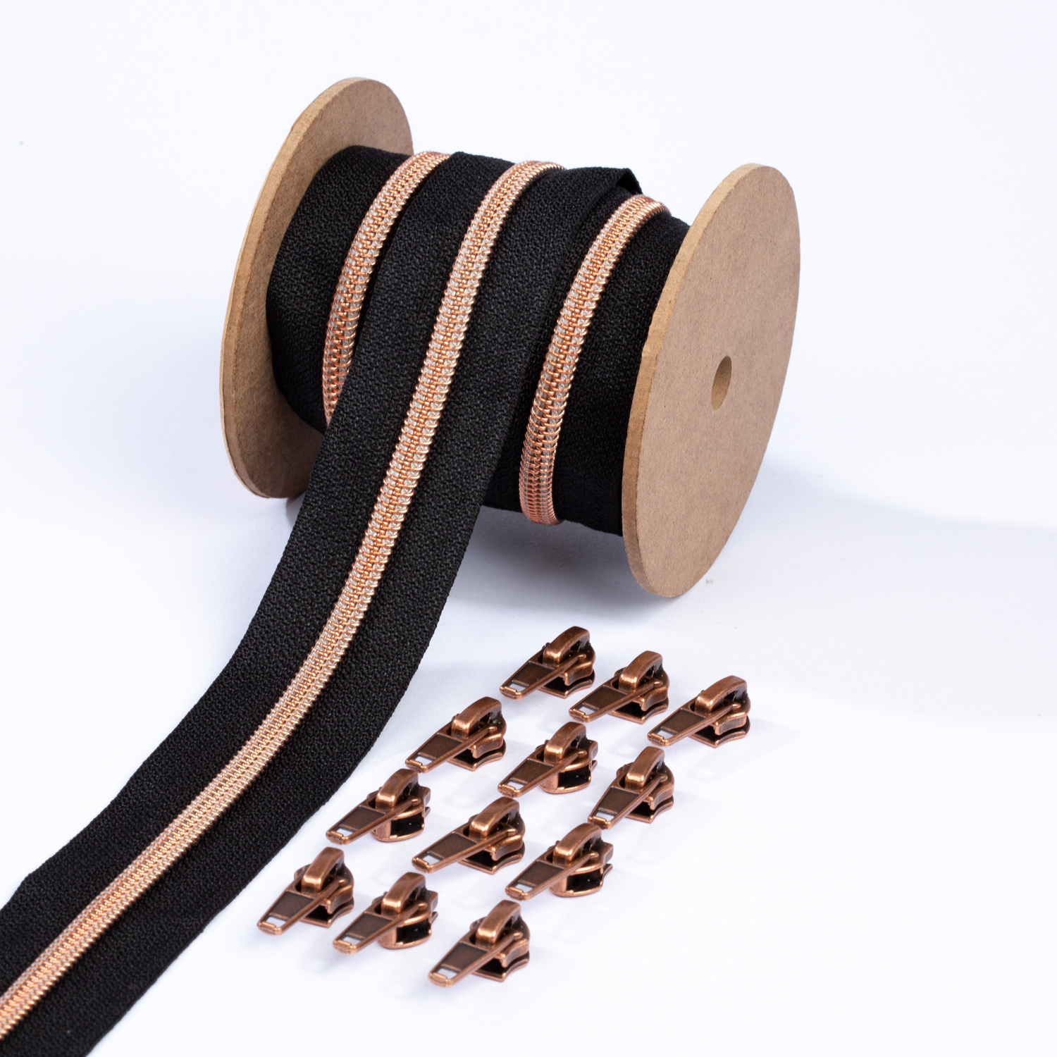 Metalliserat blixtlås i koppar 6,5mm pärla | 3m | Svart B5
