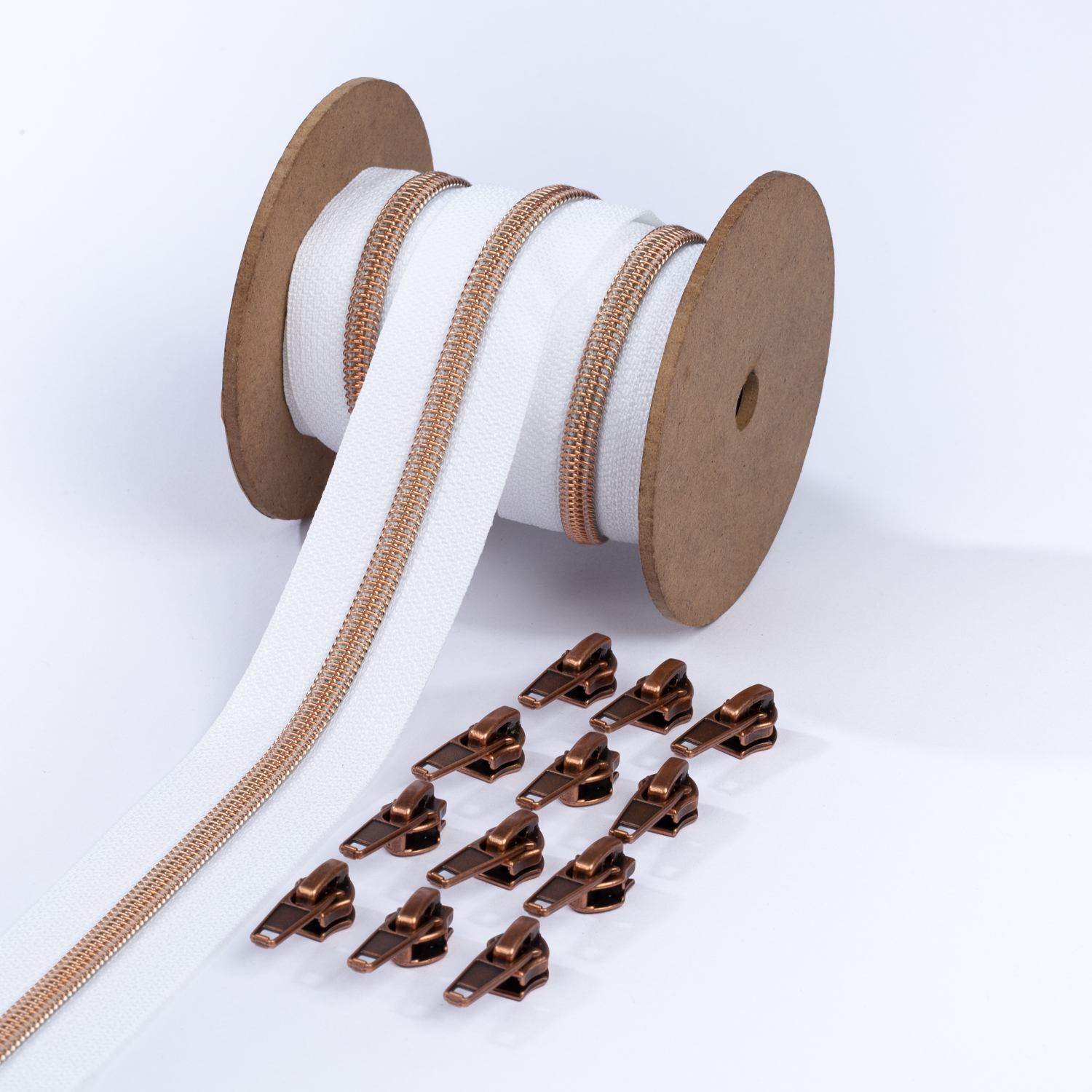 Metalliserat blixtlås i koppar 6,5mm pärla | 3m | vit B3