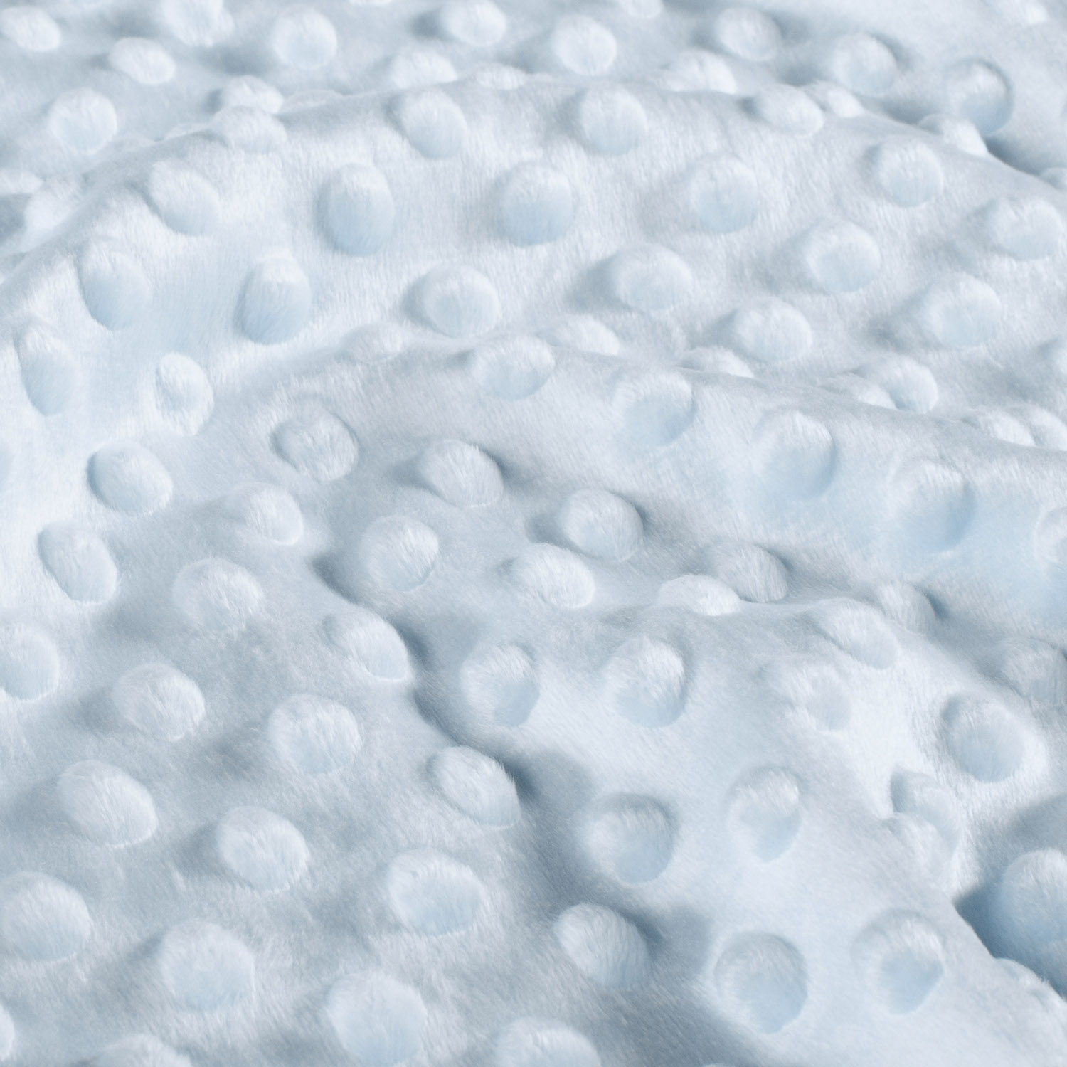Denna himmelsblå Minky Fleece förtrollar med sin mjuka färgton och de karakteristiska 3D-prickarna som mjukt och plastiskt reser sig från underlaget. De upphöjda prickarna ger tyget ett lekfullt, lätt glänsande utseende och gör det till ett verkligt blickfång – vare sig som en detalj i barnrummet eller som en mysig accent på soffan och sängen.