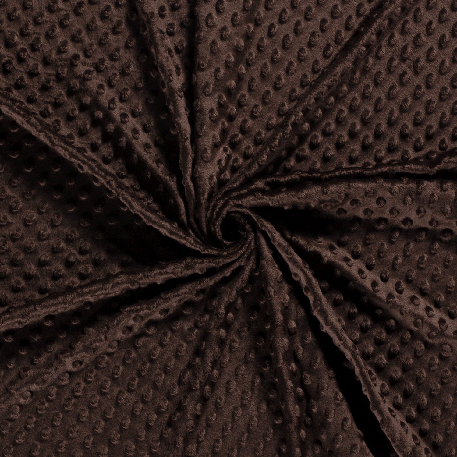 Denna Minky fleece förför med sin djupa mörkbruna färg och karaktäristiska 3D-prickstruktur som ger tyget en elegant och levande look. De mjuka upphöjda prickarna skimrar lätt beroende på ljusets infall och skapar en vacker plastisk effekt.