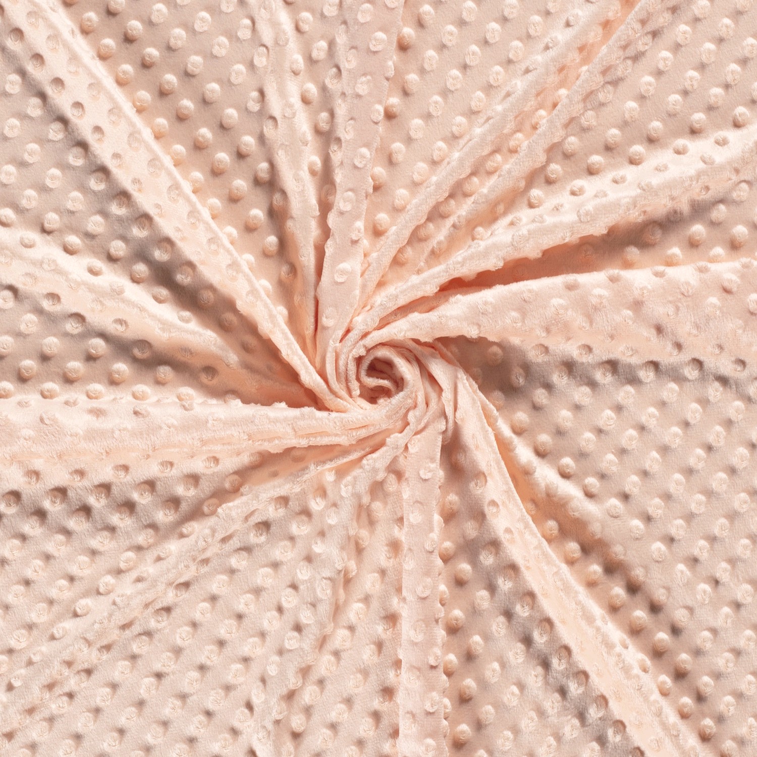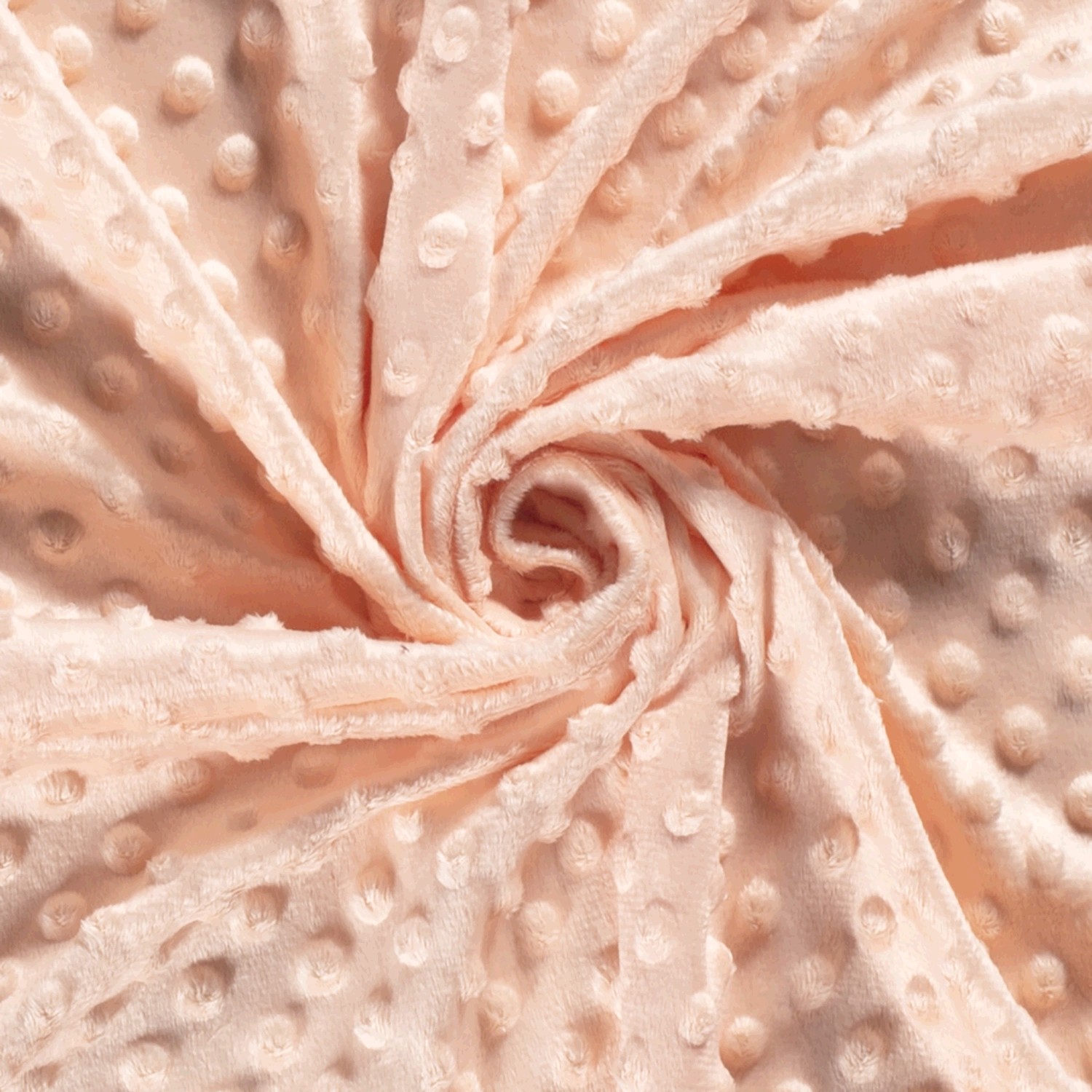 Enkelt att krypa in i: Denna Minky fleece i mjuk aprikos förtrollar med sin supermjuka yta och de karakteristiska, upphöjda 3D-prickarna. Den fina prickstrukturen ger inte bara ett vackert utseende, utan gör tyget extra fluffigt och behagligt.