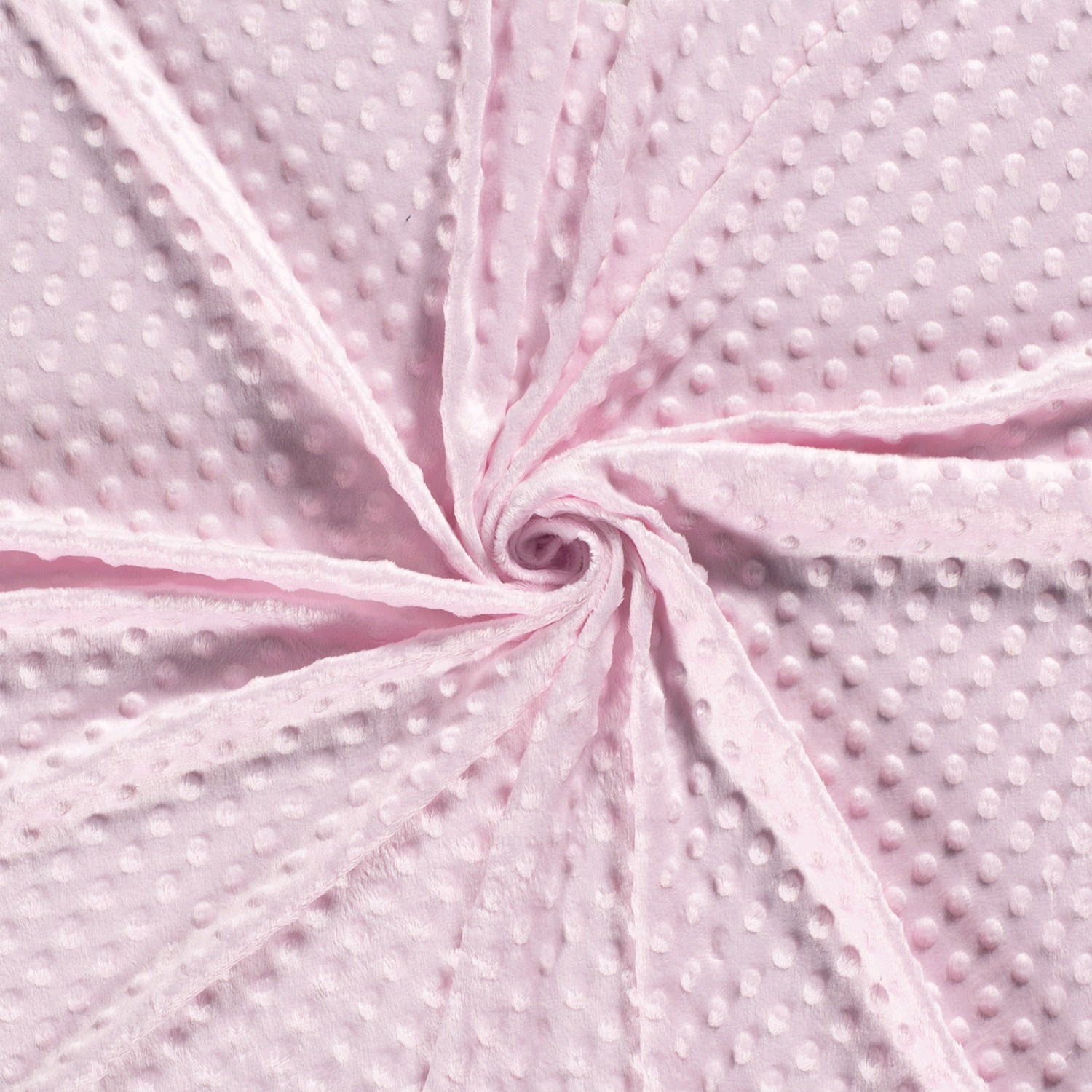 Sockervadd för sybehållaren – så mjuk känns denna Minky Fleece i mjukt ljusrosa. De karaktäristiska upphöjda 3D-prickarna ger tyget en lekfull struktur som inbjuder till att stryka över och ger varje syprojekt det lilla extra.