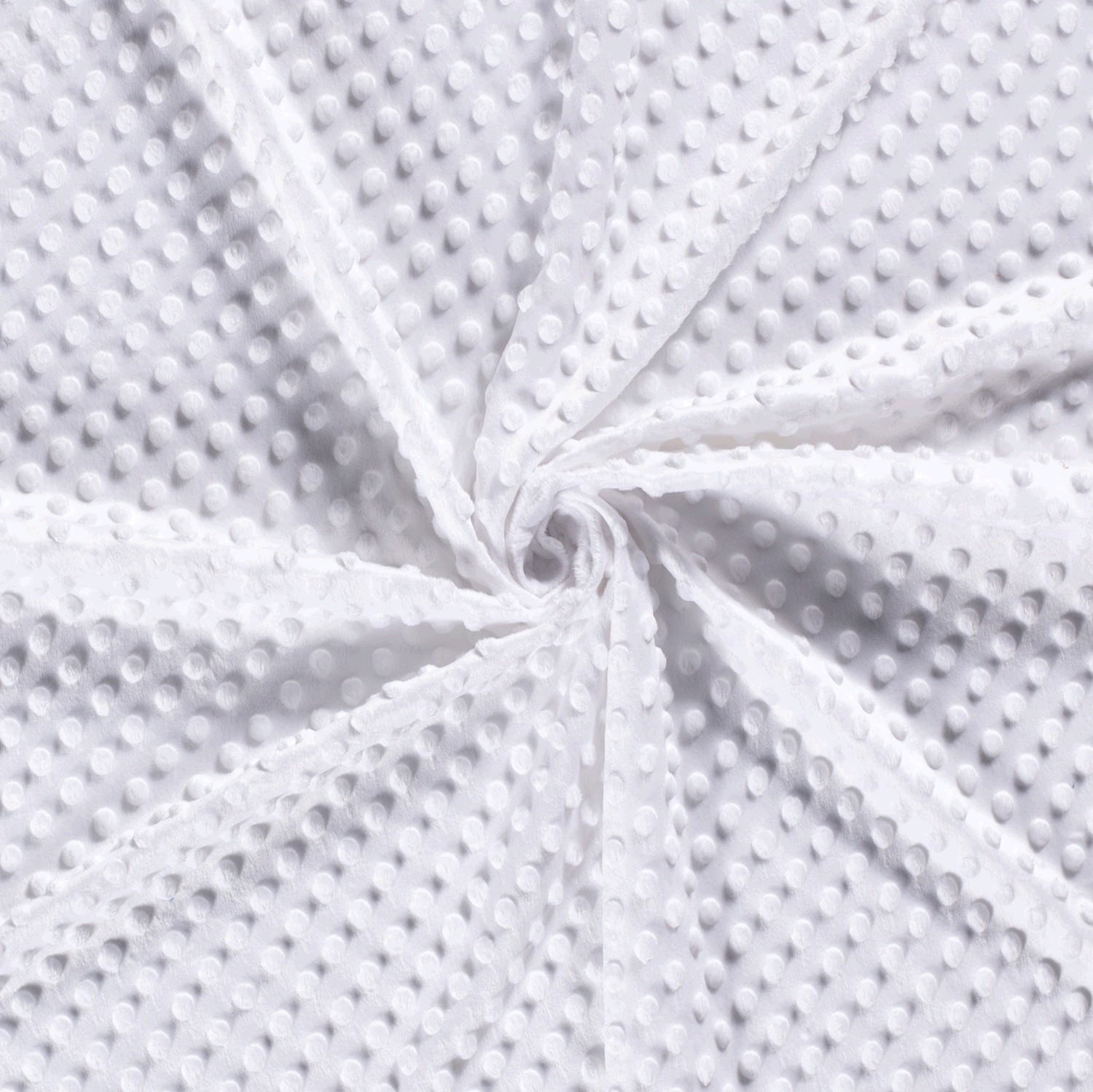 Sött, fluffigt och helt enkelt perfekt att krypa in i: denna Minky fleece i strålande vitt förtrollar med sina karaktäristiska upphöjda 3D-prickar. Den mjukt skimrande ytan och den plastiska prickstrukturen ger tyget en elegant och samtidigt lekfull look.
