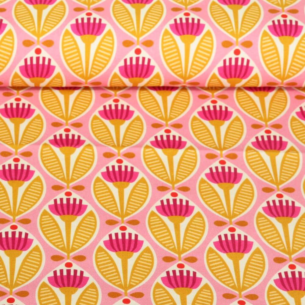 Fina blommor, glada färger och en touch av sommar: denna organiska canvas förtrollar med sin lekfulla rosa design. Den mjukt rosa bakgrunden pryds av små, kärleksfullt illustrerade blomknoppar och blad i harmoniskt samordnade nyanser - en fräsch blandning av varm rosé, rosa och accentfärger som omedelbart får dig på gott humör.