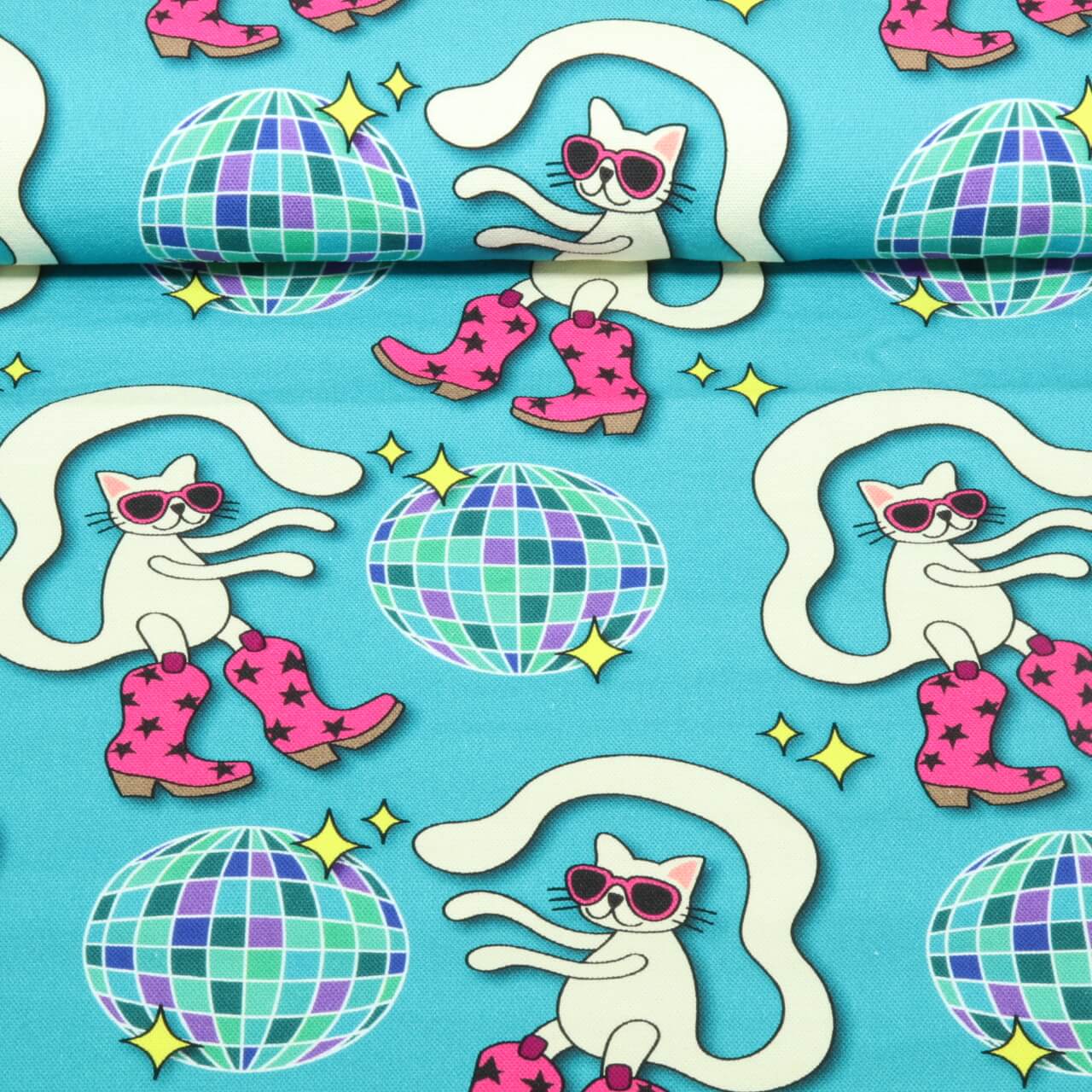 De varma accentfärgerna - delikata rosé- och hudtoner samt subtila mörka konturer - harmonierar underbart med den djupa petrolfärgade bakgrunden och gör tyget till ett riktigt blickfång. Oavsett om det handlar om en hipstergympapåse, en statementväska, kuddfodral till tonårsrummet, sittdynor, dekorationer eller coola kläder med street style-touch: det här tyget ger rörelse, energi och gott humör till alla sömnadsprojekt.