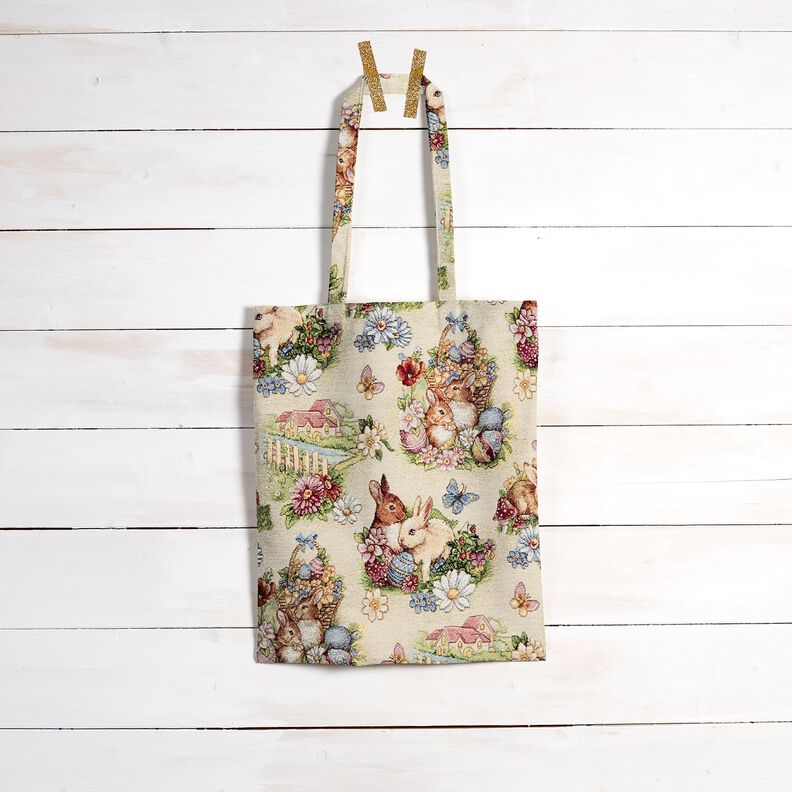 Dekorationstyg Gobeläng Påskharar i trädgården – ljusbeige/bär