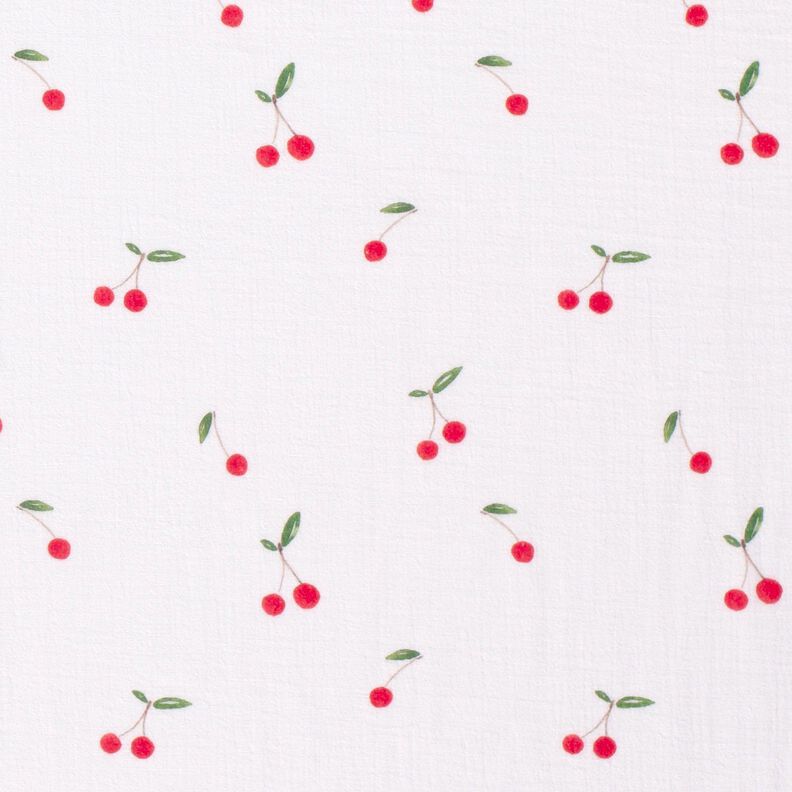 Muslin/Dubbel-krinkelväv Körsbär i akvarell Digitaltryck – vit