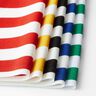 - Viktigt: Tyget får bara klippas till och bearbetas på tvären mot stadkanten, dvs. breddens mått är fast. Om tyget klipps till parallellt med stadkanten förskjuts fibrerna! Stadkanterna är fasta men de tillklippta kanterna måste sicksackas ordentligt.