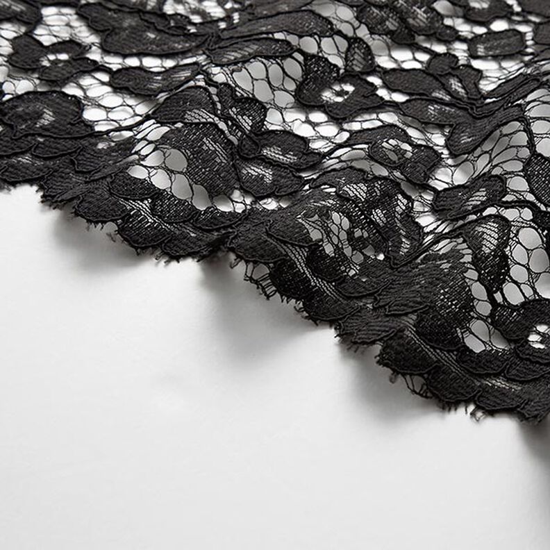 Spetstyg med bågkant på båda sidor Blommönster – svart
