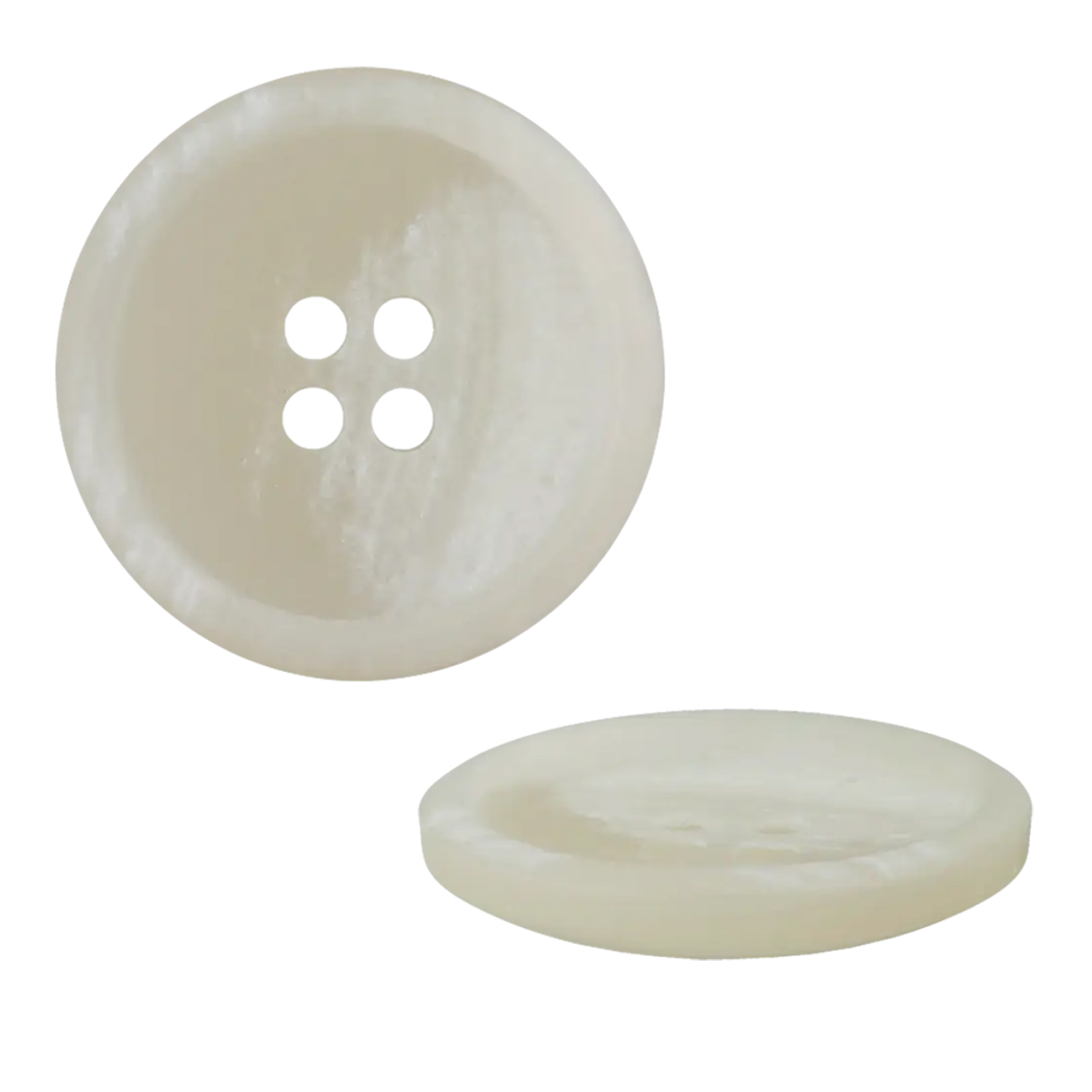 Med en diameter på 28 mm är knappen ett snyggt blickfång - perfekt som ett enskilt statement-element eller i en knappslå. Den klara, neutrala vita färgen kan utan problem kombineras med alla färger och mönster och understryker både minimalistisk och lekfull design.