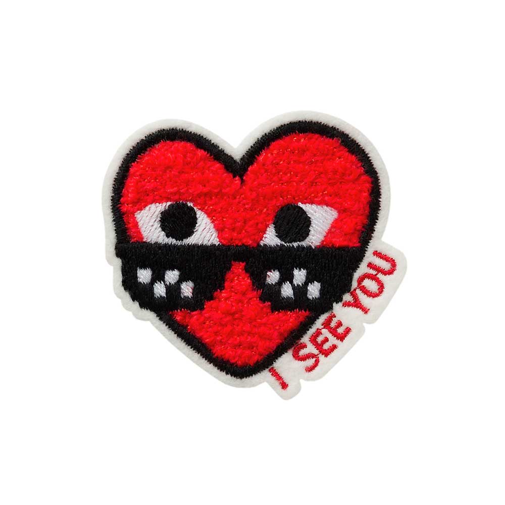 Förälska dig i det här fräcka hjärtat! Den klarröda hjärtlappen med coola solglasögon och texten "I SEE YOU" ger dina sömnadsprojekt en lekfull och trendig touch. De kontrastrika broderidetaljerna i svart och vitt gör att motivet verkligen sticker ut och blir ett riktigt blickfång.