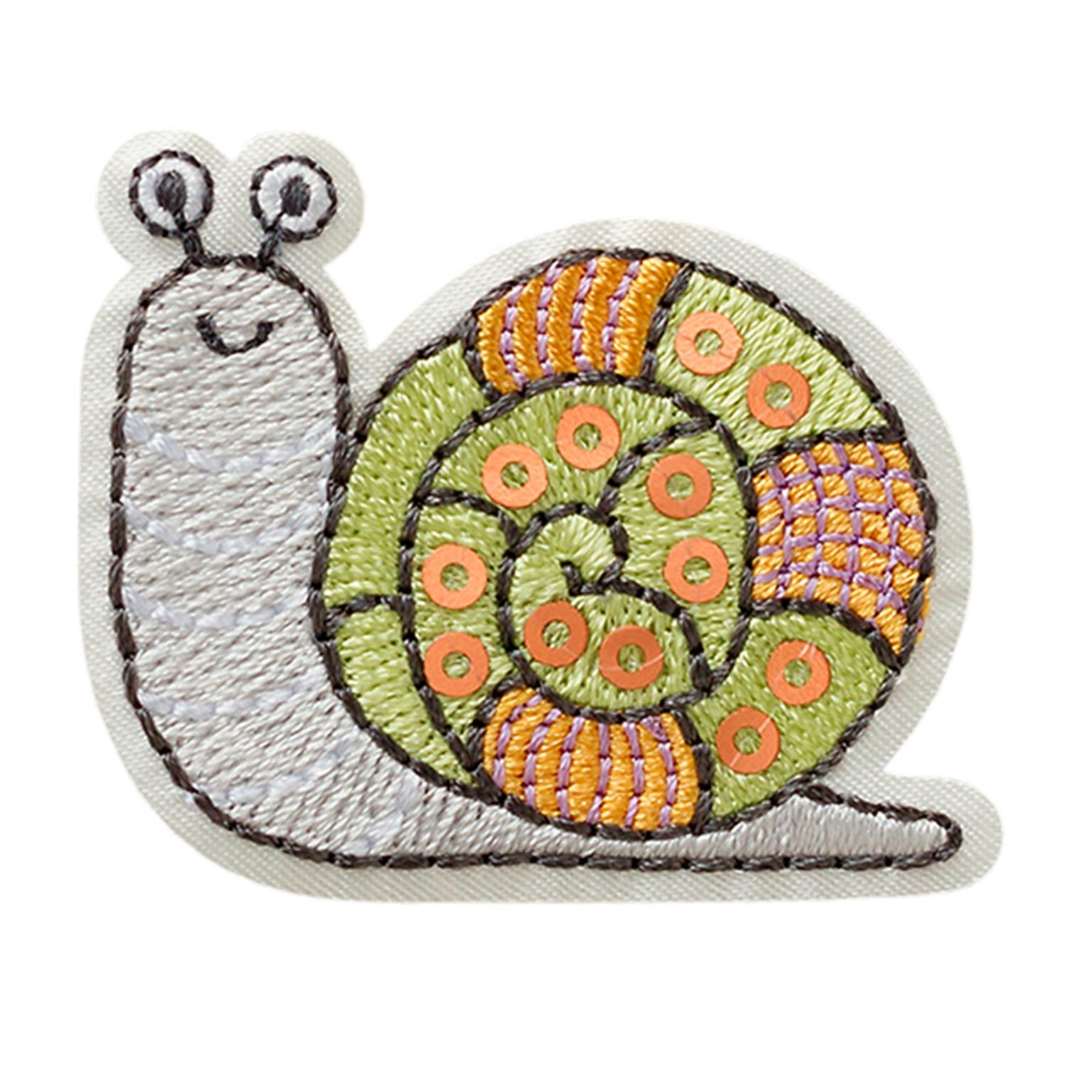 Den här förtrollande lappen ger glittrig stämning till alla sömnadsprojekt: en söt snigel drar till sig allas uppmärksamhet och får väskor, jackor, ryggsäckar eller barnkläder att glänsa på nolltid.