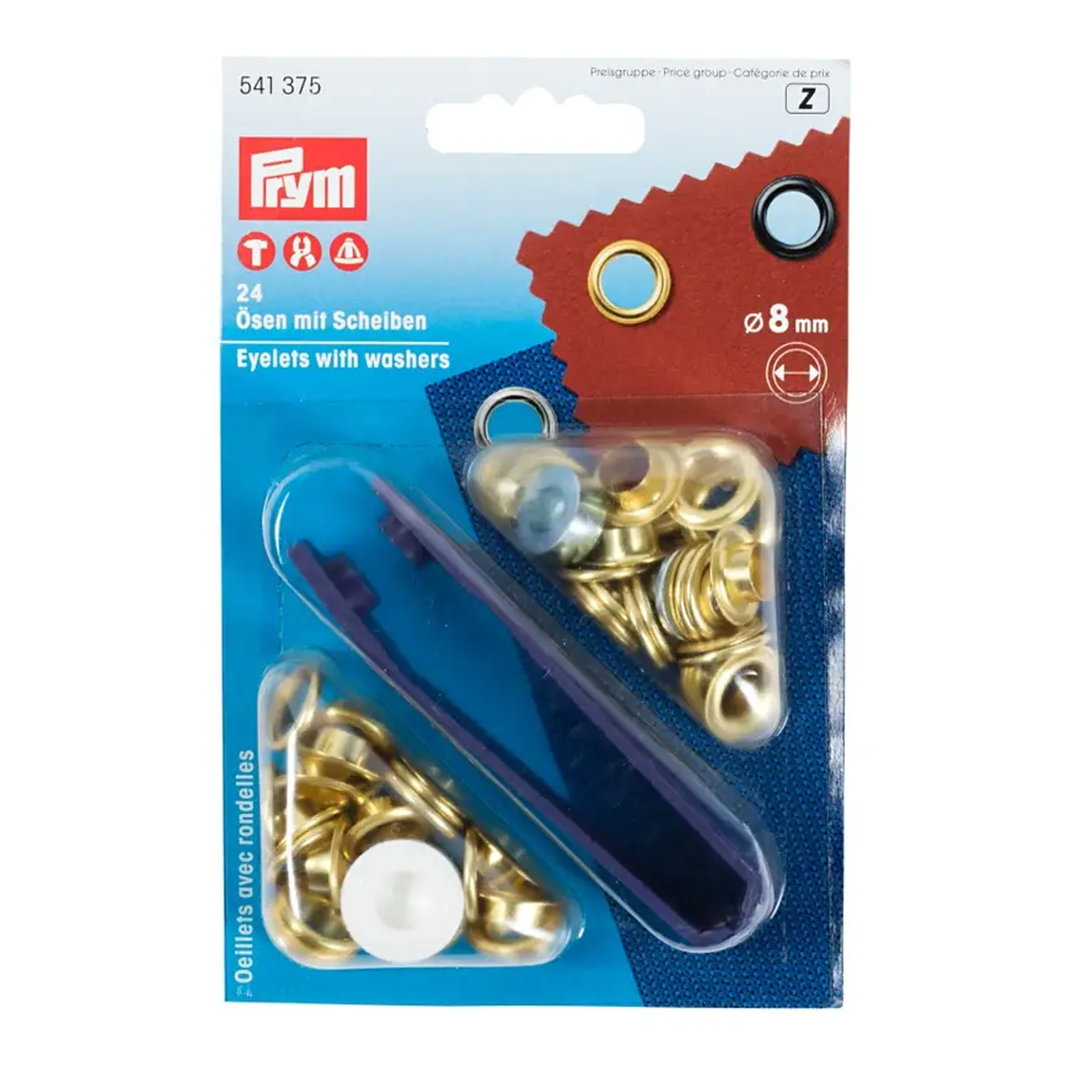 Prym öljetter 8mm Ø + verktyg (tillbehör) - guld