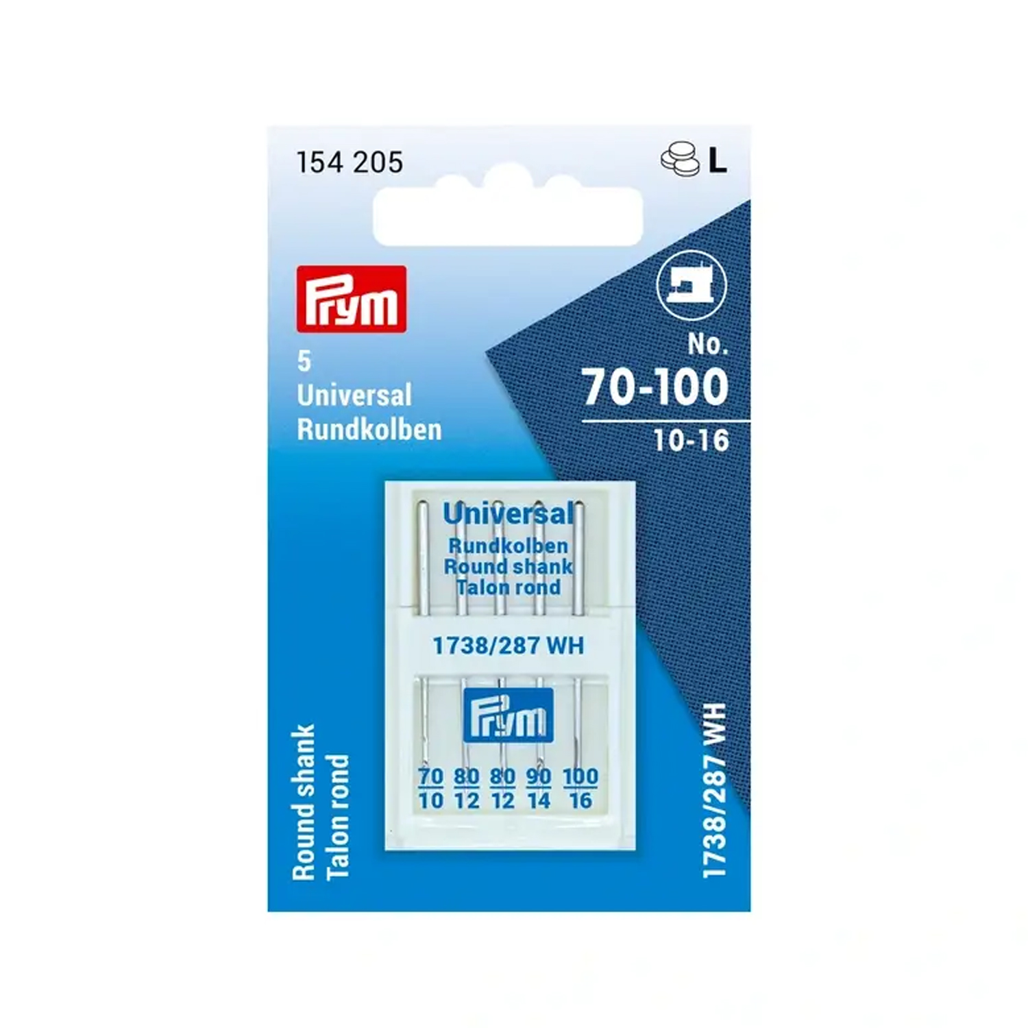 Med Pryms symaskinsnålar 287(690) med rund kolv kan du göra din gamla, beprövade symaskin redo för nya projekt igen. Det praktiska setet innehåller fem nålar i standardstorlekarna 70-100 - perfekt om du vill täcka in olika tygkvaliteter med bara en förpackning.