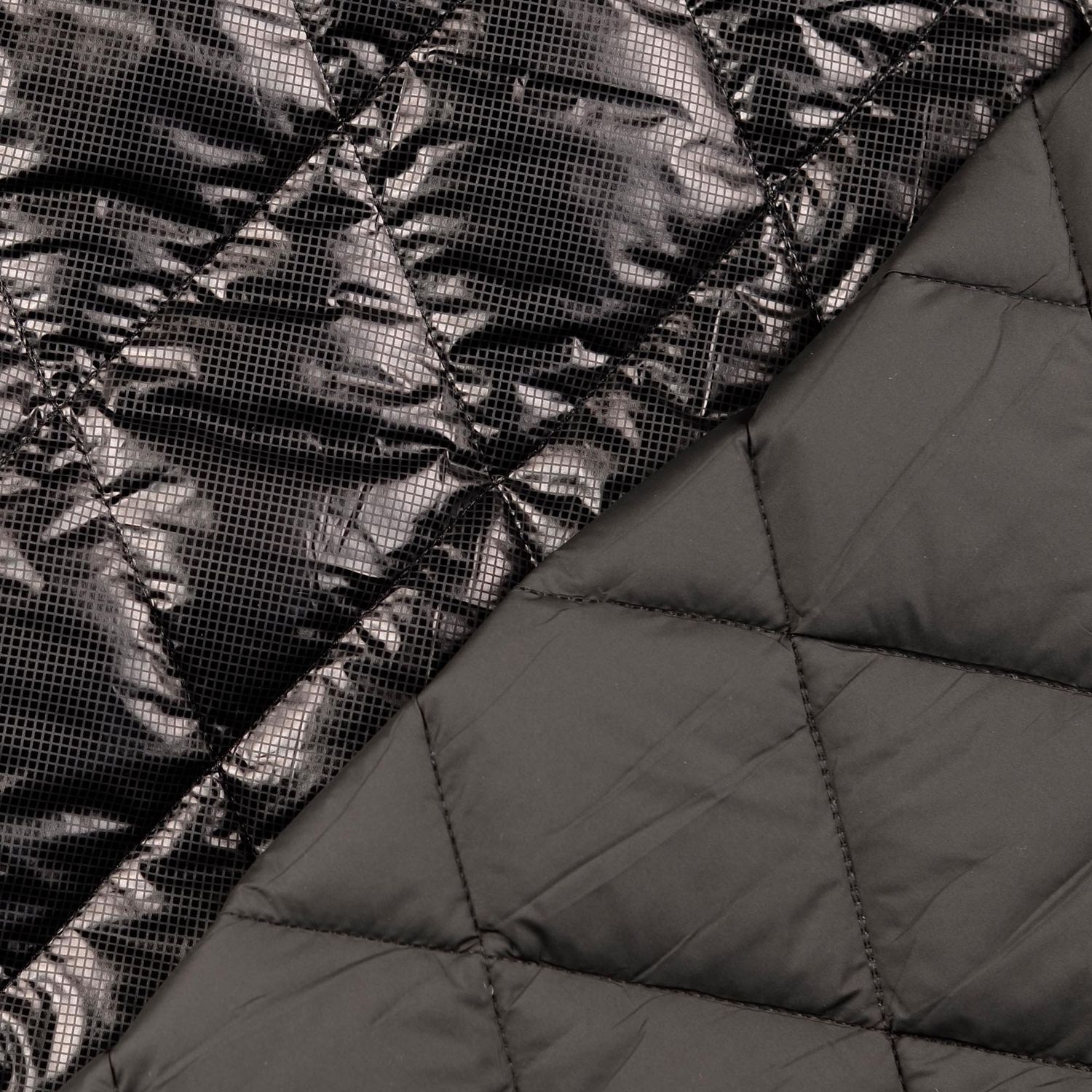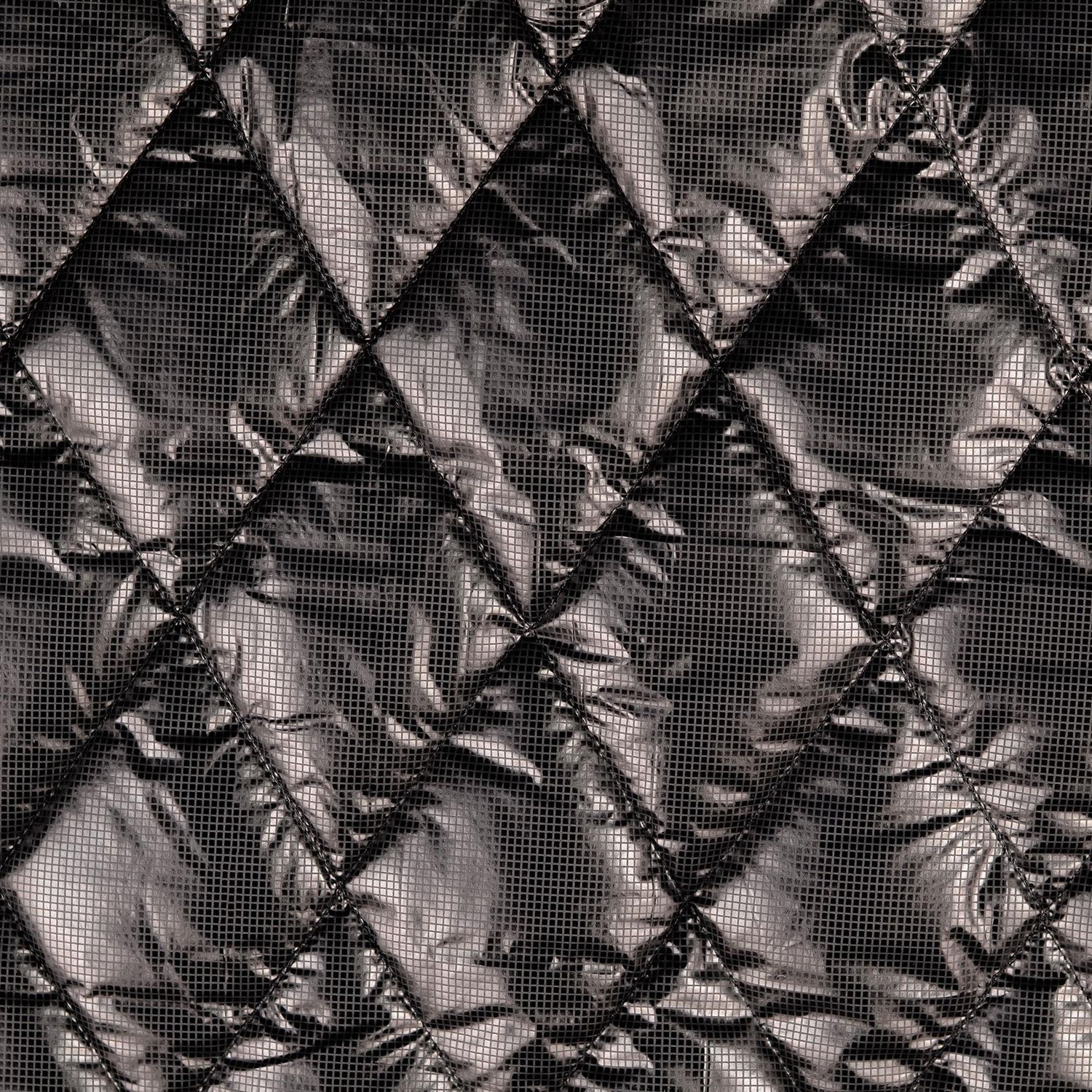 Quiltad jacka tyg - diamanter folierad svart vadderad