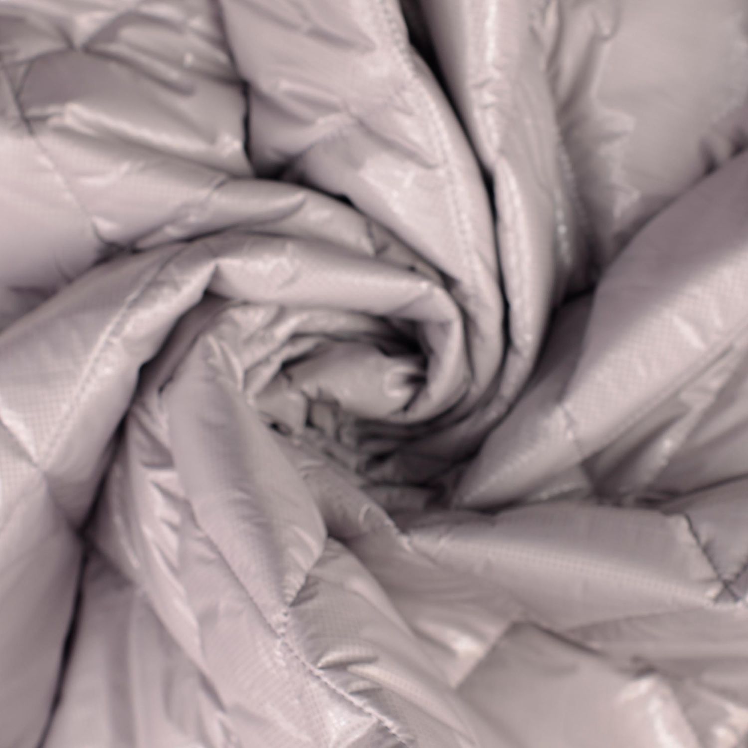 Det här quiltade kavajtyget imponerar med sin moderna, folierade yta i elegant grått. Den subtila metallfinishen ger tyget en sofistikerad, lätt skimrande look som omedelbart fångar blicken. Den jämna diamantquiltningen skapar inte bara en vacker textur utan också ett elegant, tidlöst utseende.
