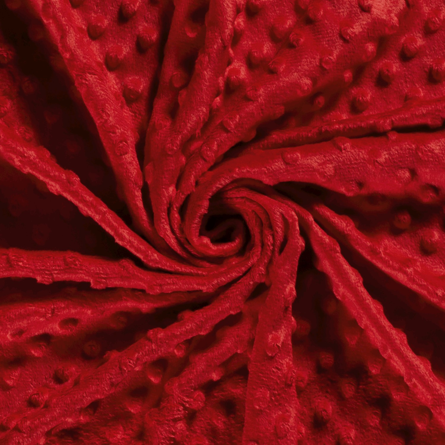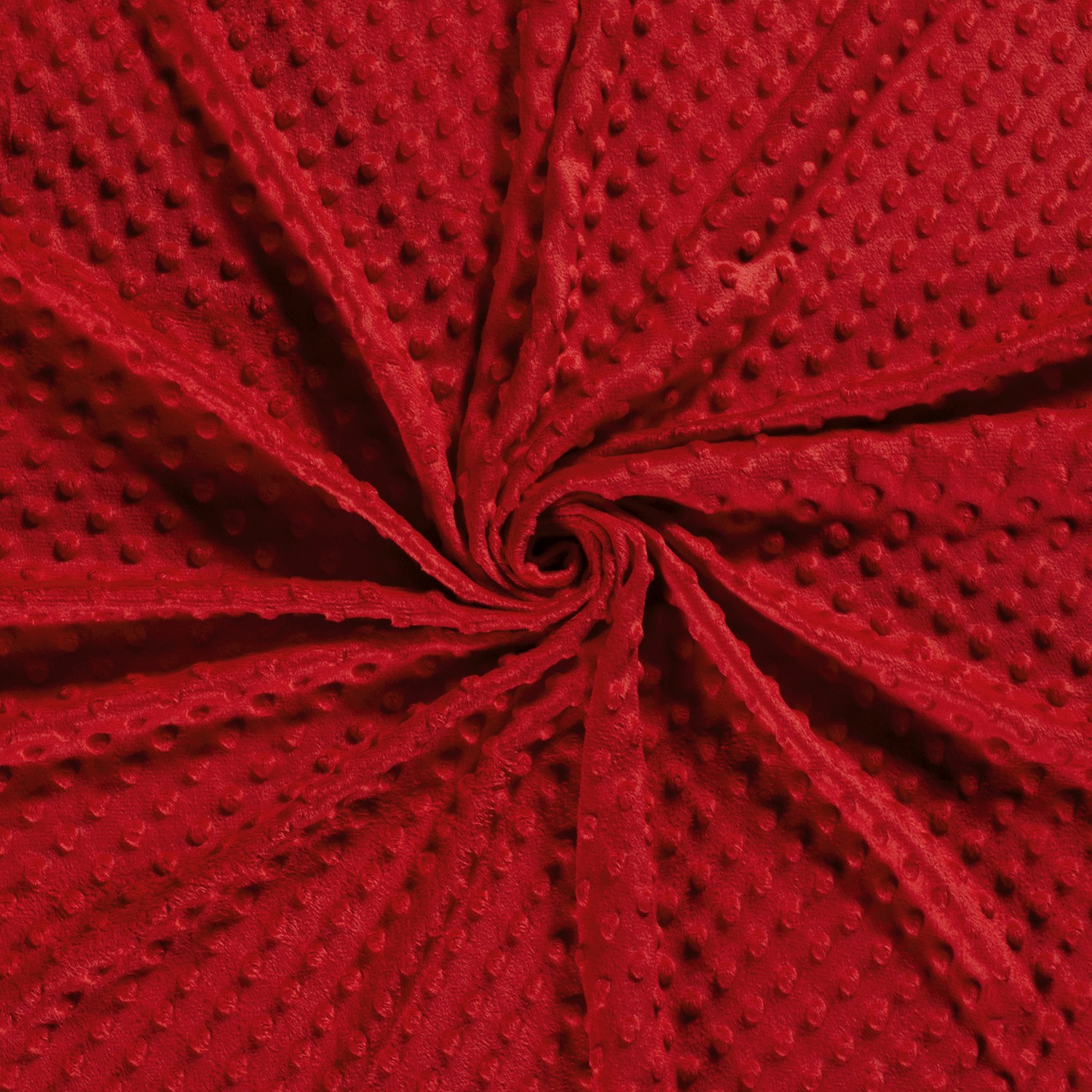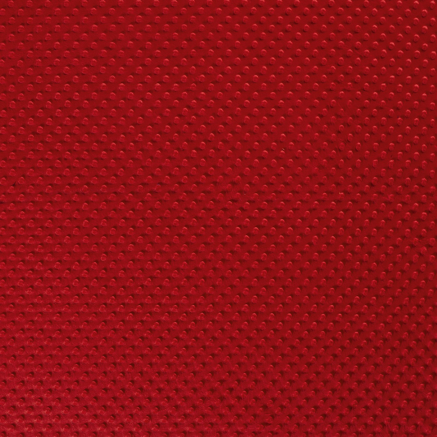 Denna Minky fleece i klar röd färg med präglade 3D-prickar inbjuder genast till mys. De mjukt upphöjda prickarna ger tyget en lekfull struktur som inte bara ser fantastisk ut utan också känns himmelskt mjuk.