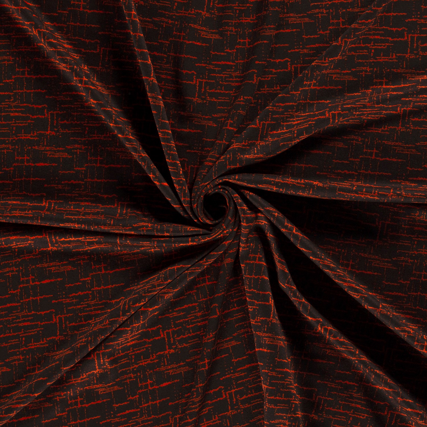 Denna Romanit Jersey imponerar med sitt eleganta och samtidigt fräscha randiga mönster: På djup mörkbrun lyser fina linjer i en varm blodapelsinton, varsamt kompletterade med ljusare, nästan gräddfärgade accenter. De mycket smala ränderna känns moderna och klara utan att vara påträngande – perfekt för tidlösa favoriter med en särskild twist.