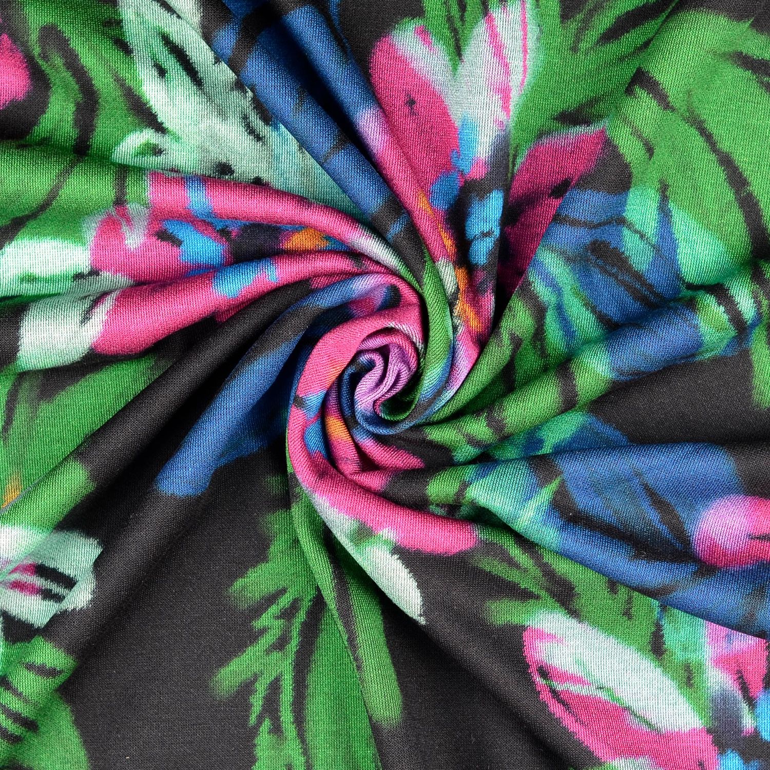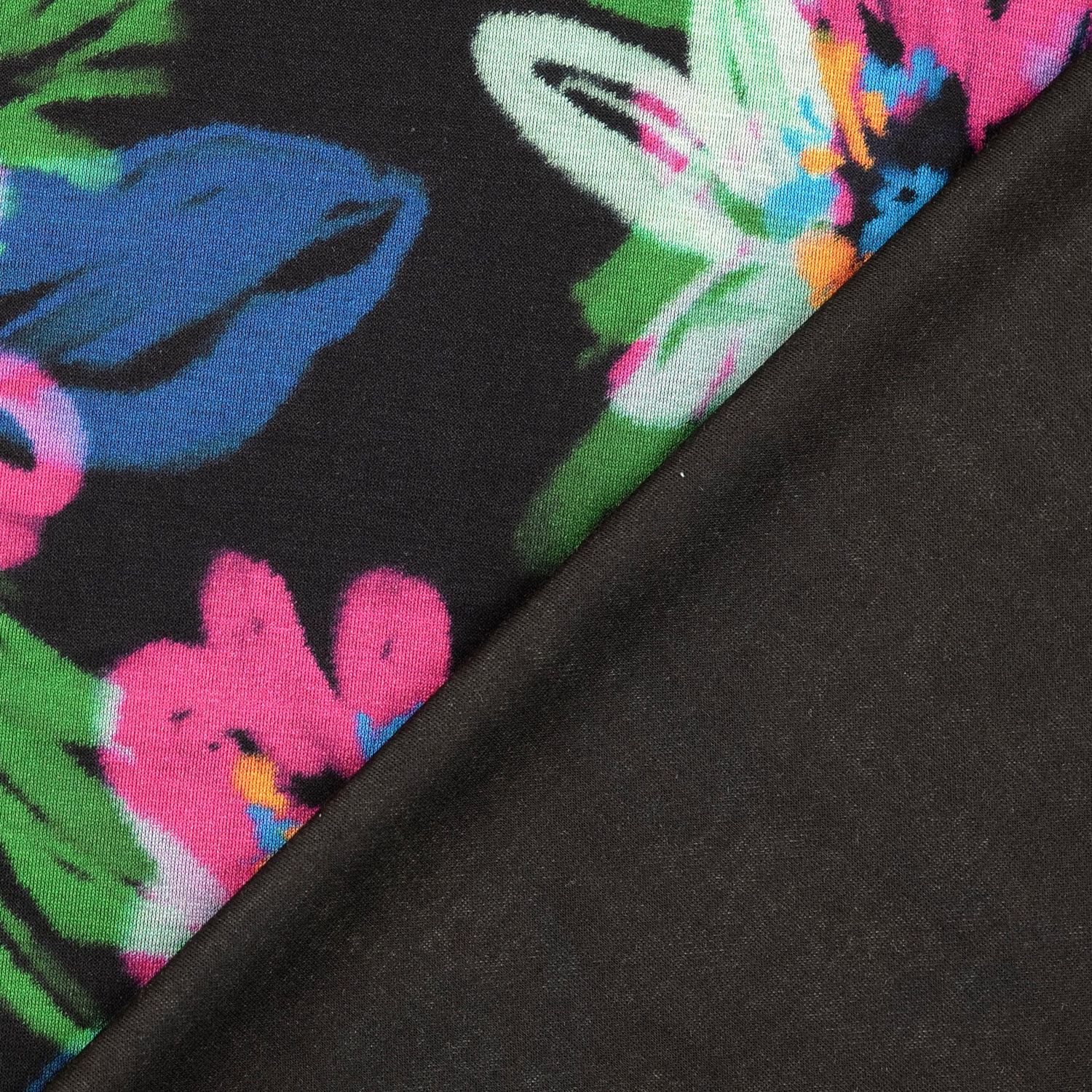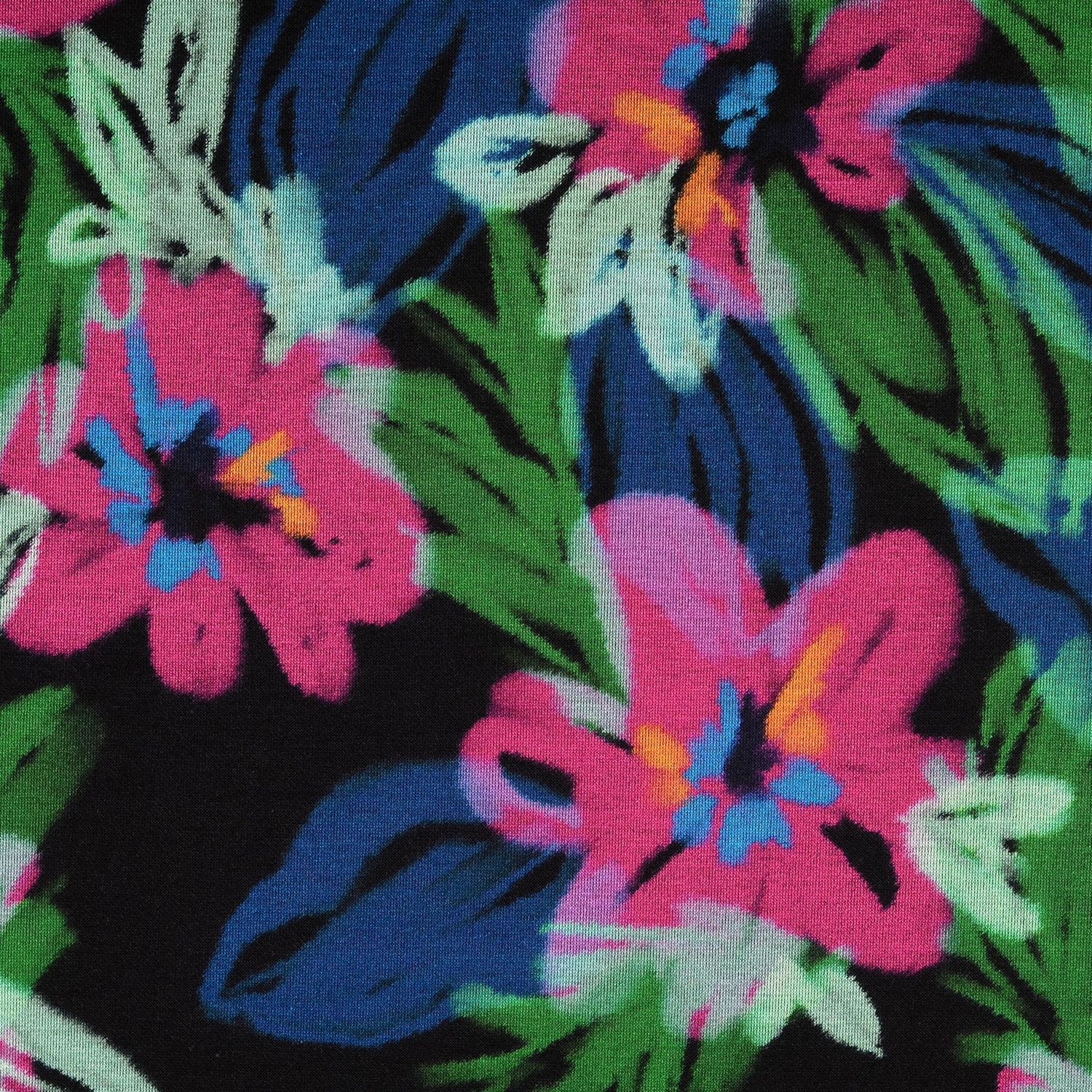 Romanit-jersey - Digitaltryck blommor petrolblå