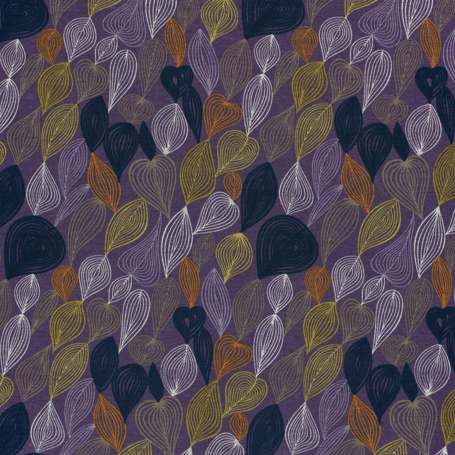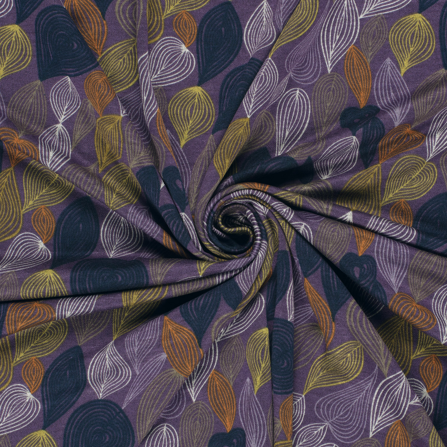 En modern lövdröm i lila: På denna Romanit-jersey löper fina, grafiska lövmotiv i klara linjer över tyget och skapar en stilfull, nästan skissartad design. De olika lila tonerna ger en harmonisk och elegant känsla, medan de ljusa linjerna ger mönstret lätthet och struktur.