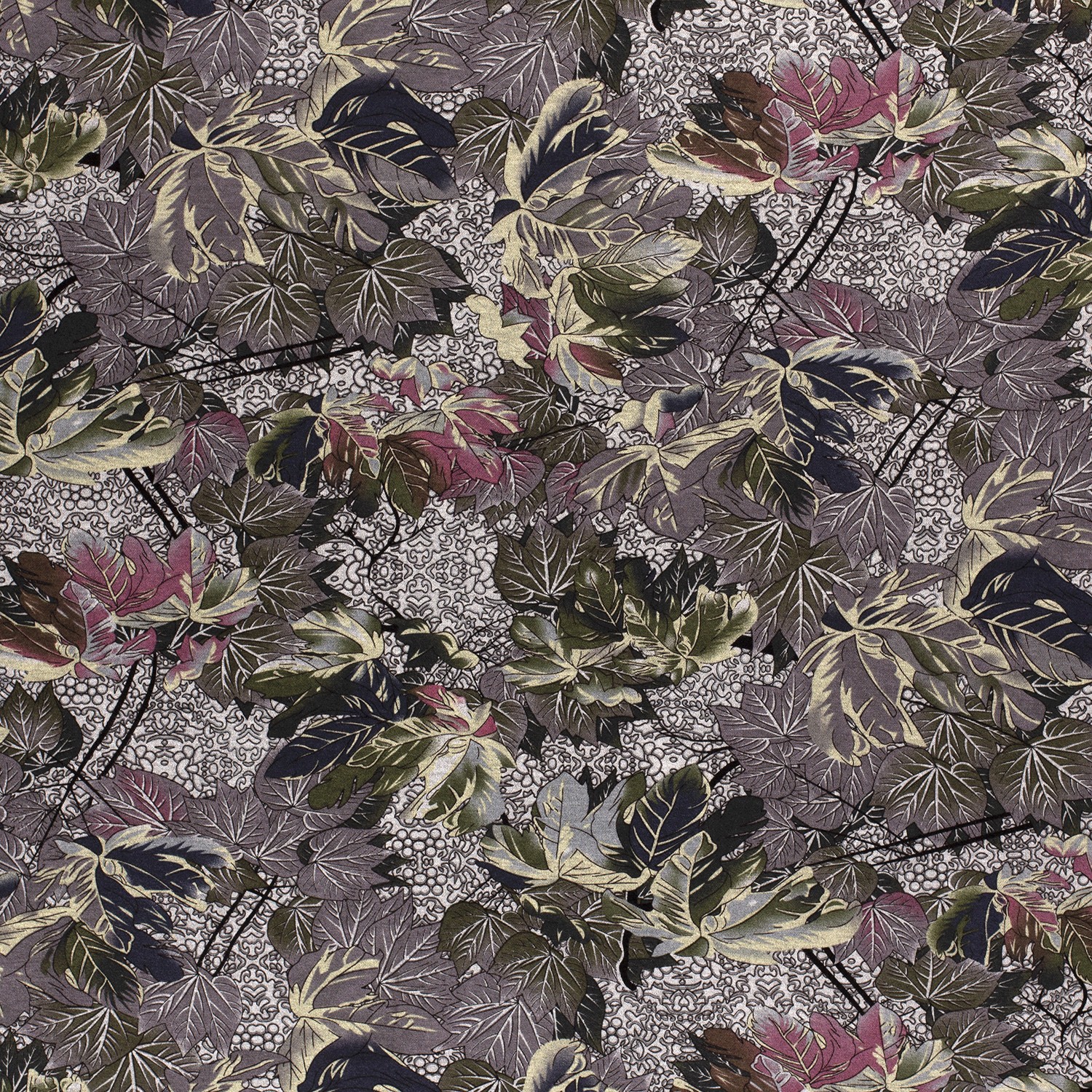 En elegant Romanit Jersey med ett förtrollande vinblads-mönster: skira blad och lekfulla krusiduller i mjuka gammelrosa och rosatoner på en ljusgrå bakgrund. De fina linjerna och det stiliserade bladmönstret påminner om en modern retro-look – feminint, elegant och samtidigt tidlöst.