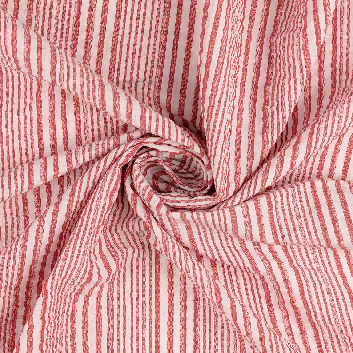 Somrig, lätt och underbart fräsch – denna seersucker med röda och vita ränder ger genast semesterkänsla vid symaskinen. Den fina, lätt skrynkliga ytan ger tyget dess typiska struktur och gör att det känns luftigt mot huden och knappt känns.
