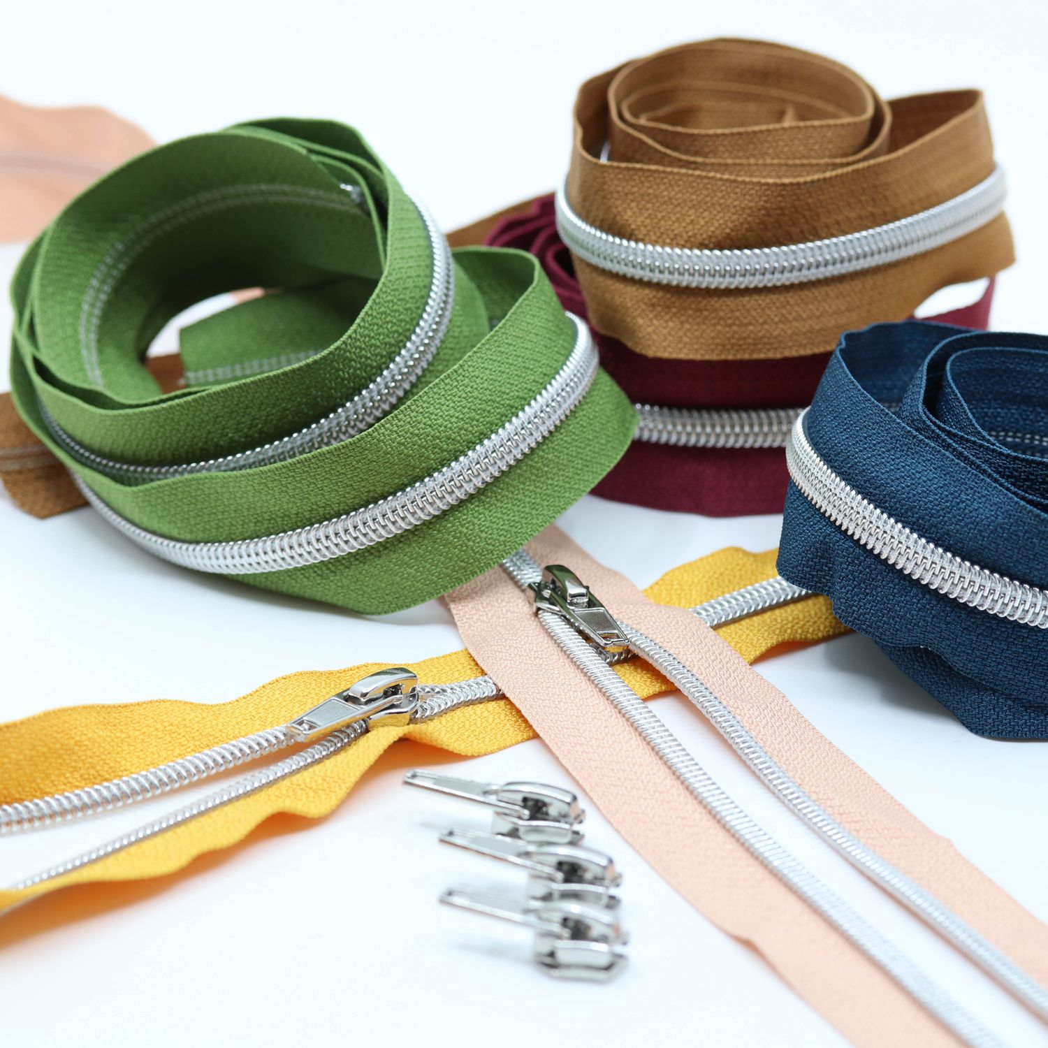 Dragkedjan är mångsidig: oavsett om den är i varm senapsgul, fyllig grön, elegant mörkblå, djup röd eller delikat nude - larvens och dragkedjans svala silver garanterar alltid en modern, högkvalitativ look. Glidarna är lätta att trä och glider smidigt över larven - perfekt för alla som värdesätter komfort och stil.