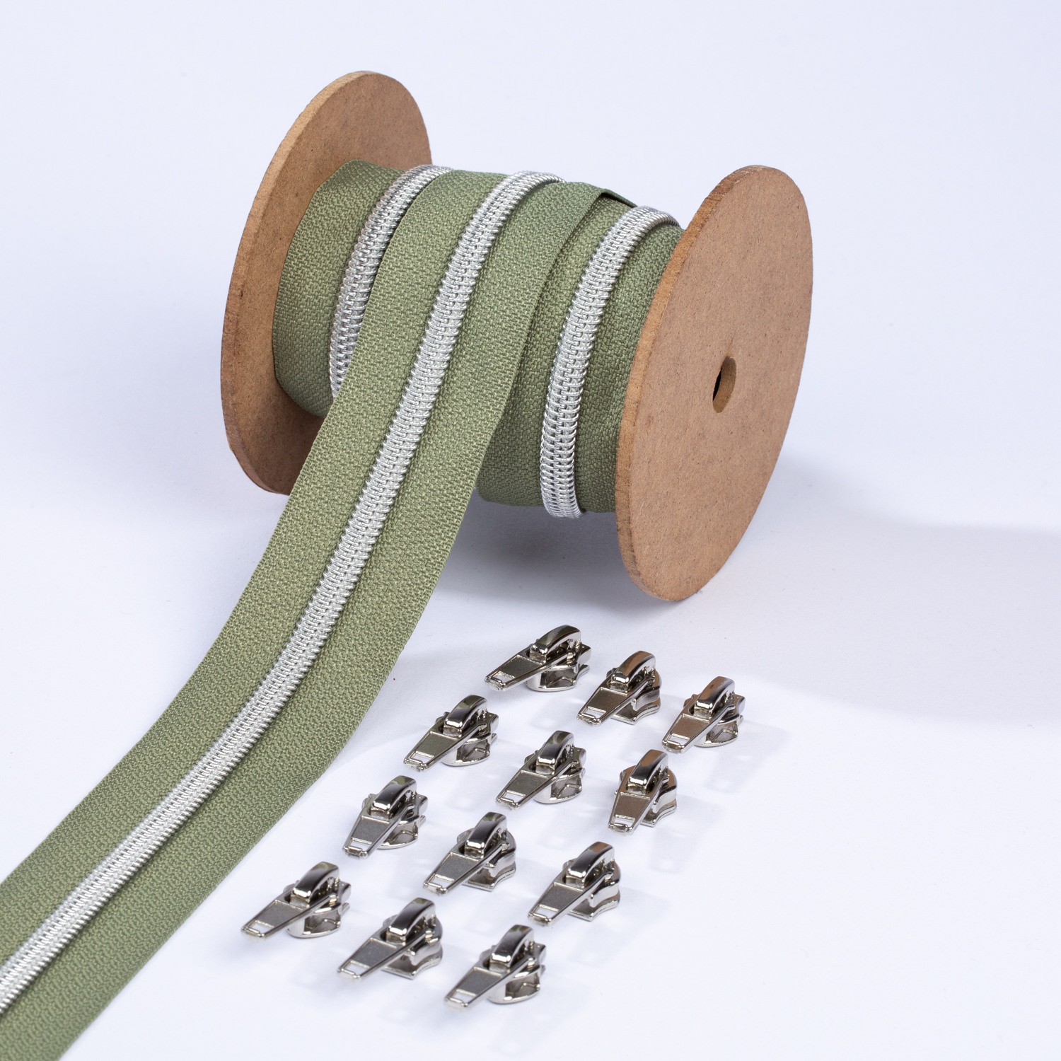 Silver blixtlås metalliserad 6,5mm pärla | 3m Armé