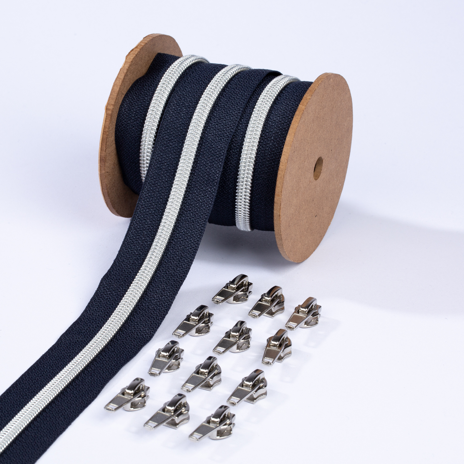 Silver blixtlås metalliserad 6,5mm pärla | 3m indigo