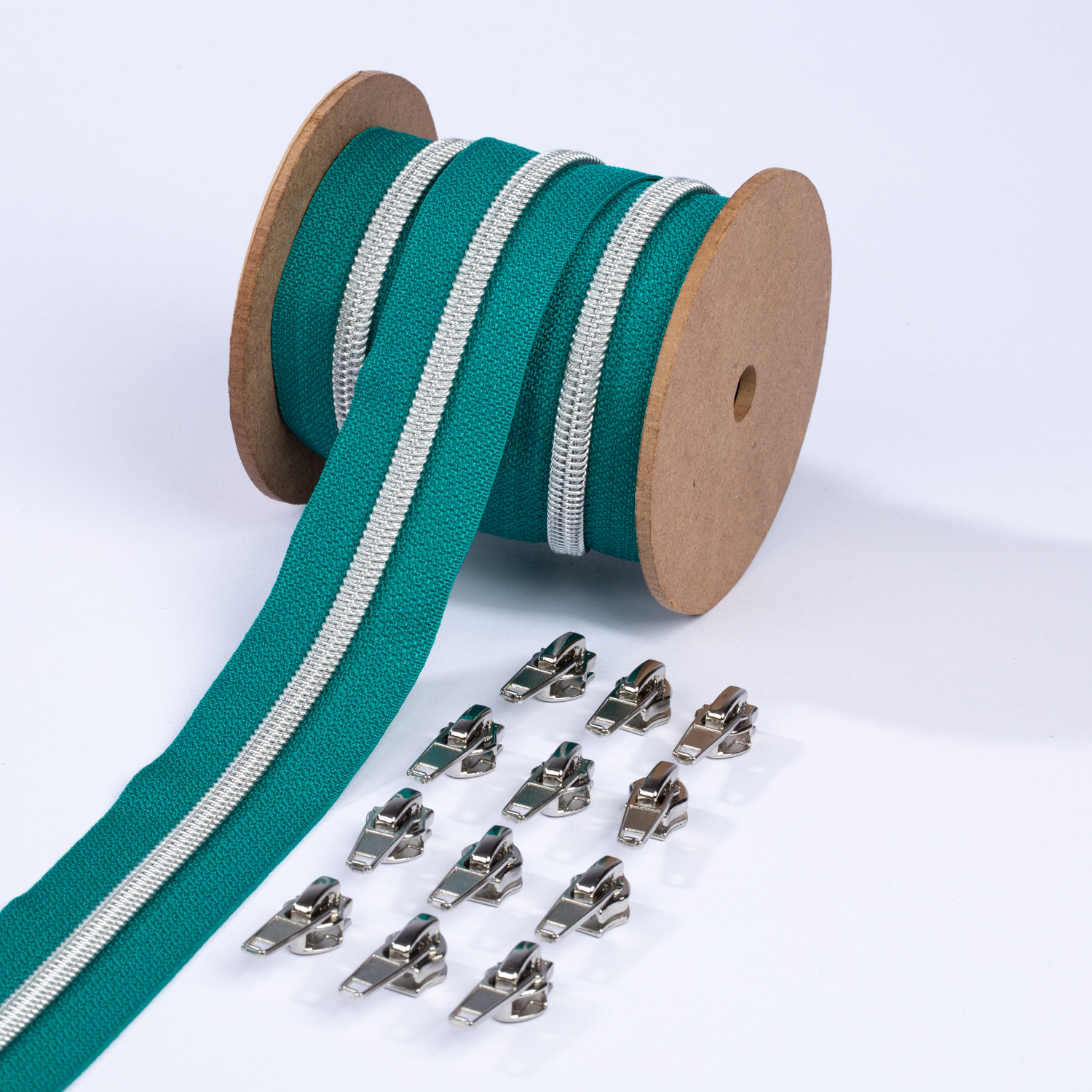 Silver blixtlås metalliserad 6,5mm pärla | 3m mörk turkos D877
