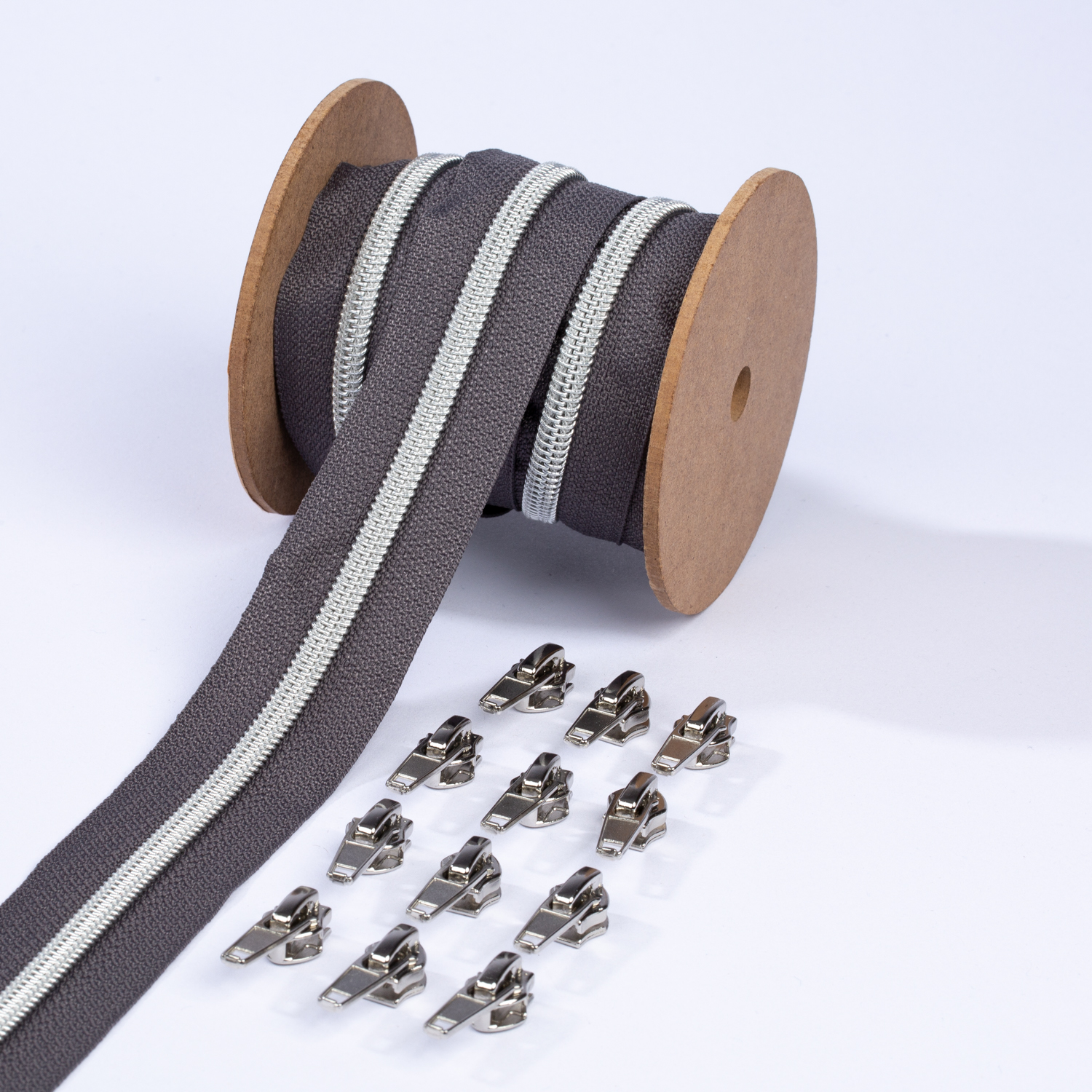 Silver blixtlås metalliserad 6,5mm pärla | 3m mörkgrå D306