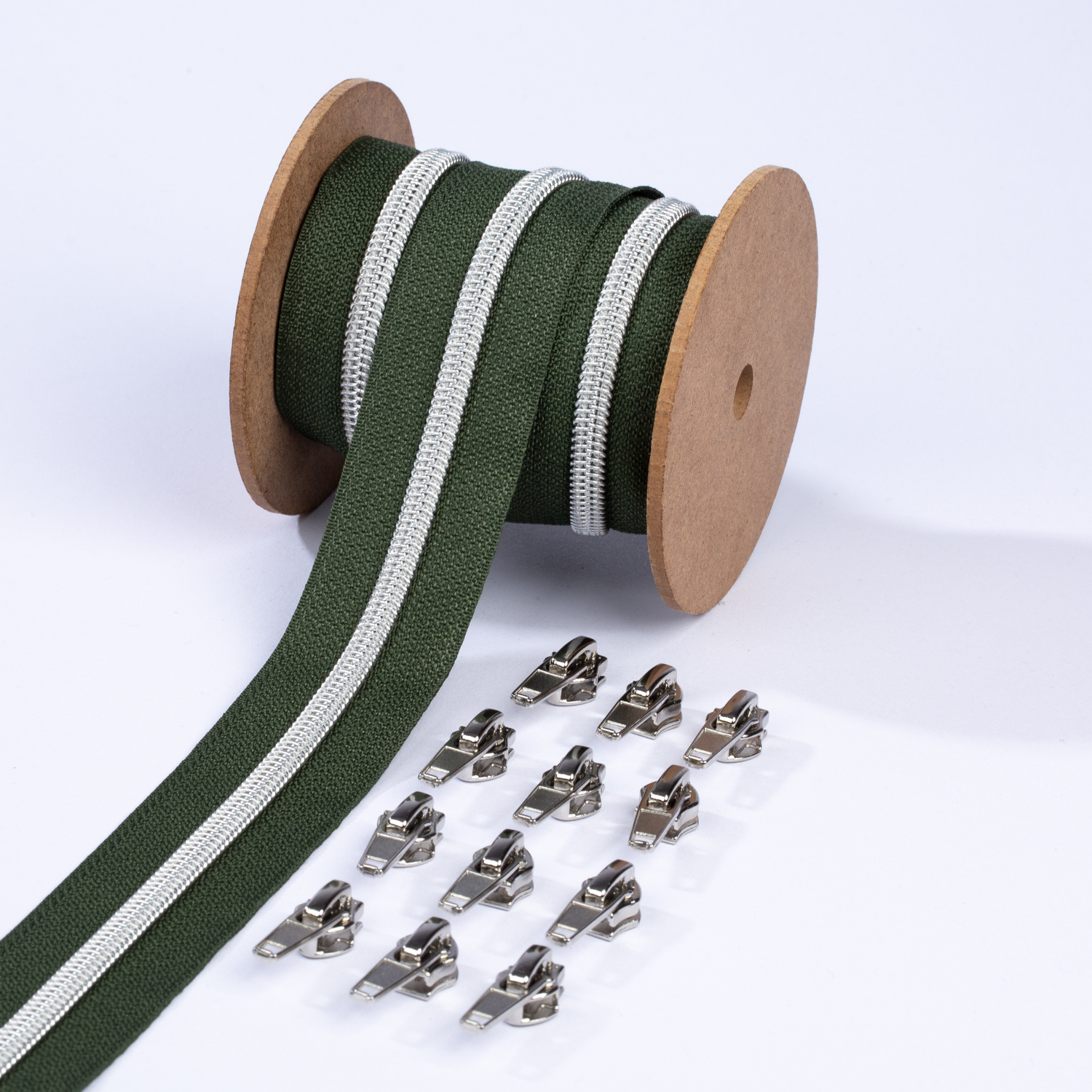 Silver blixtlås metalliserad 6,5mm pärla | 3m mörkgrön D190