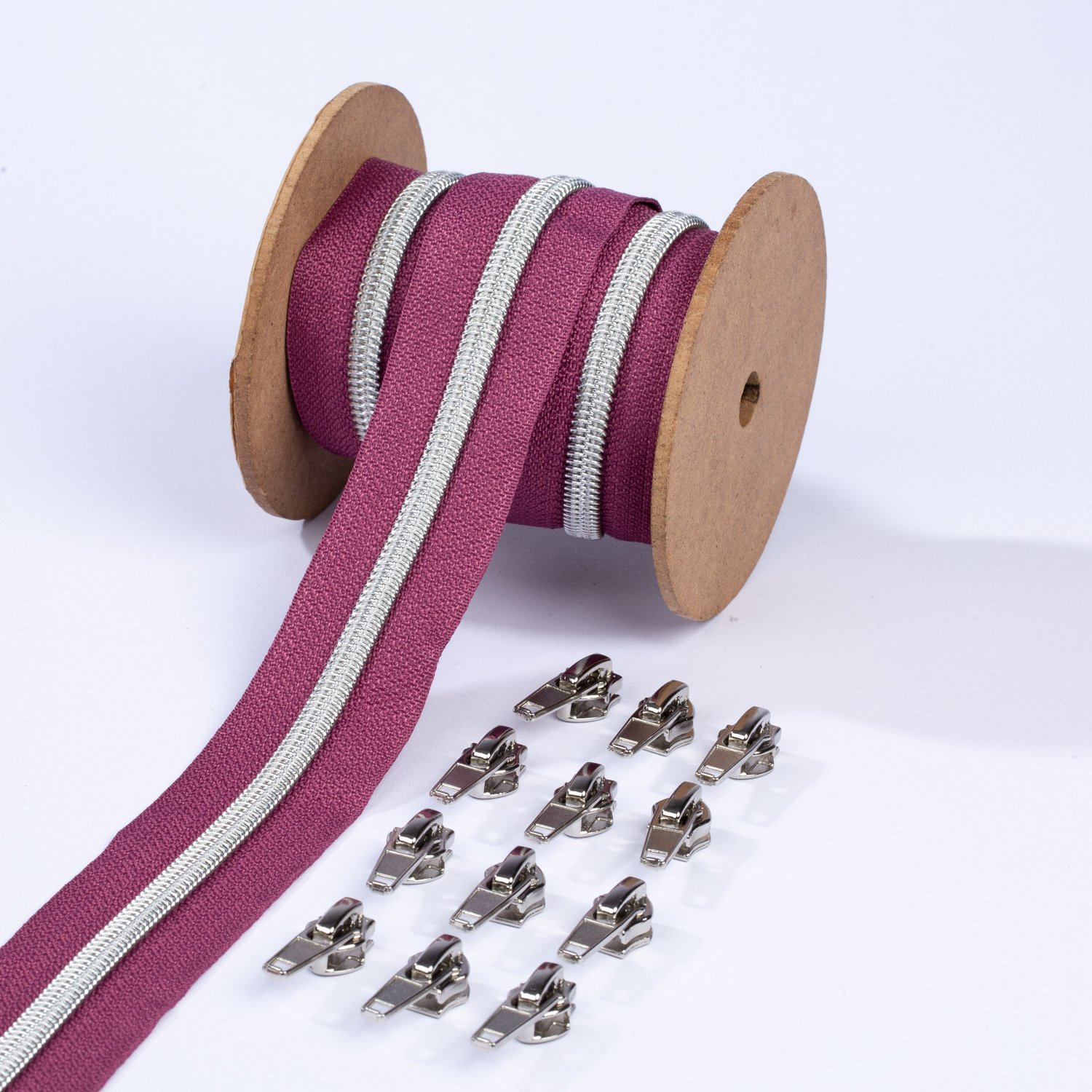 Silver blixtlås metalliserad 6,5mm pärla | 3m mörkt dovt rosa D285