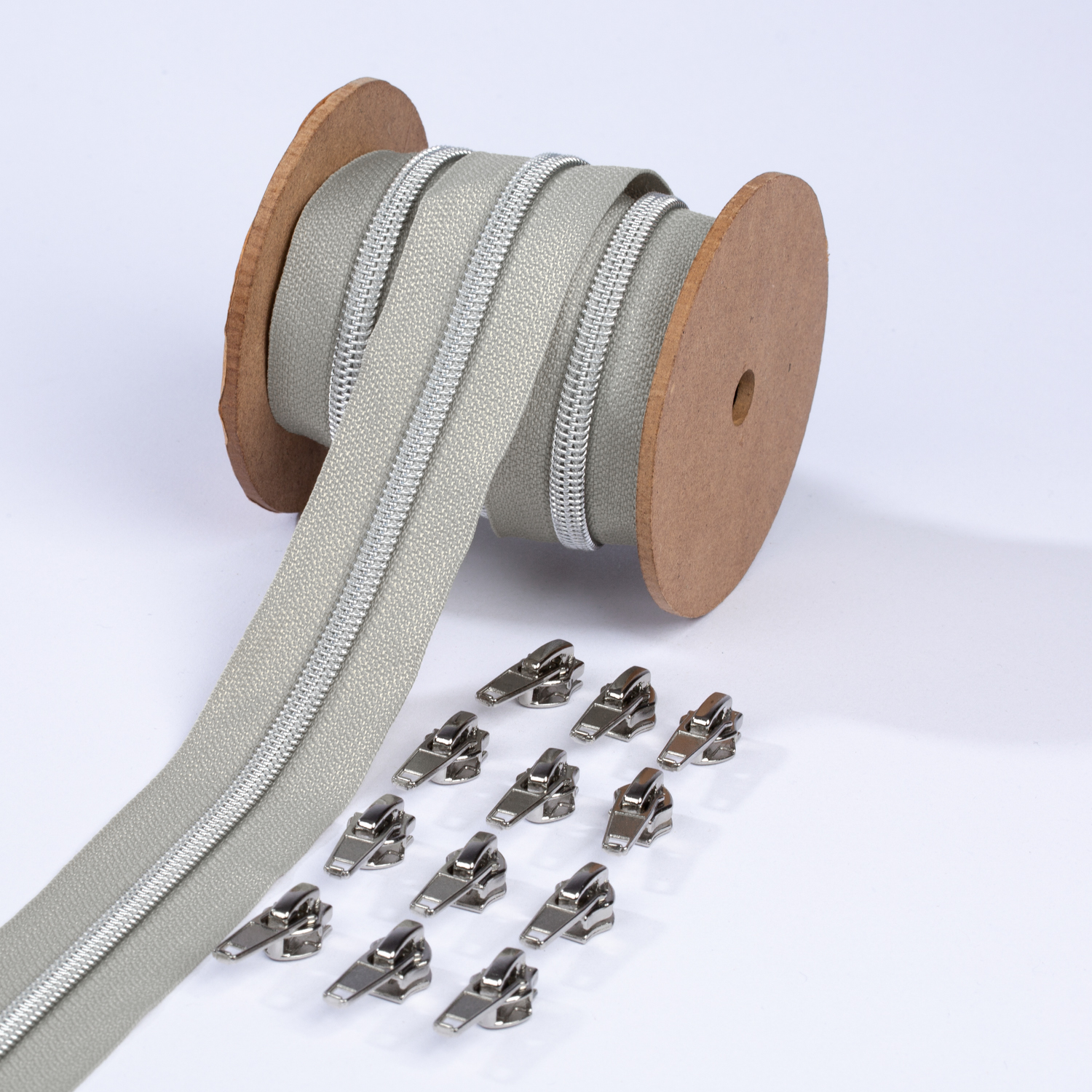 Silver blixtlås metalliserad 6,5mm pärla | 3m mus grå B24
