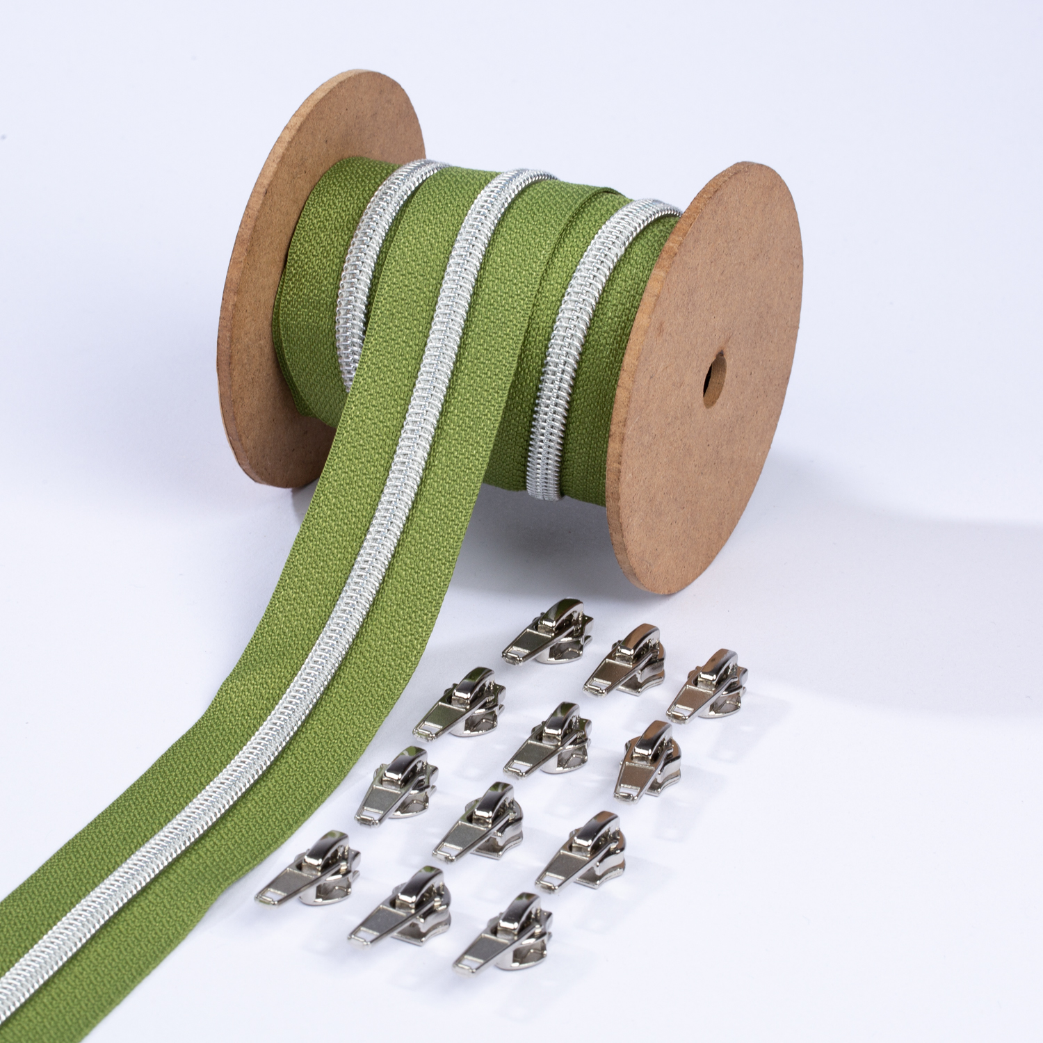Silver blixtlås metalliserad 6,5mm pärla | 3m oliv