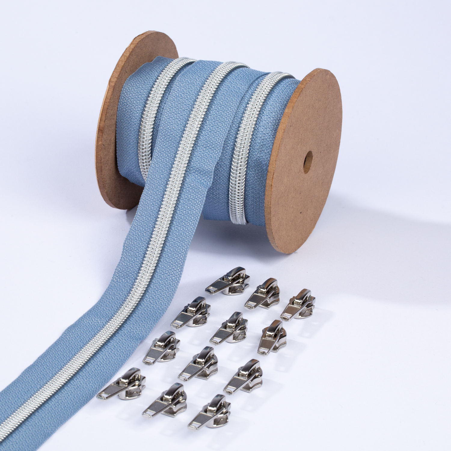 Silver blixtlås metalliserad 6,5mm pärla | 3m pastellblå D339