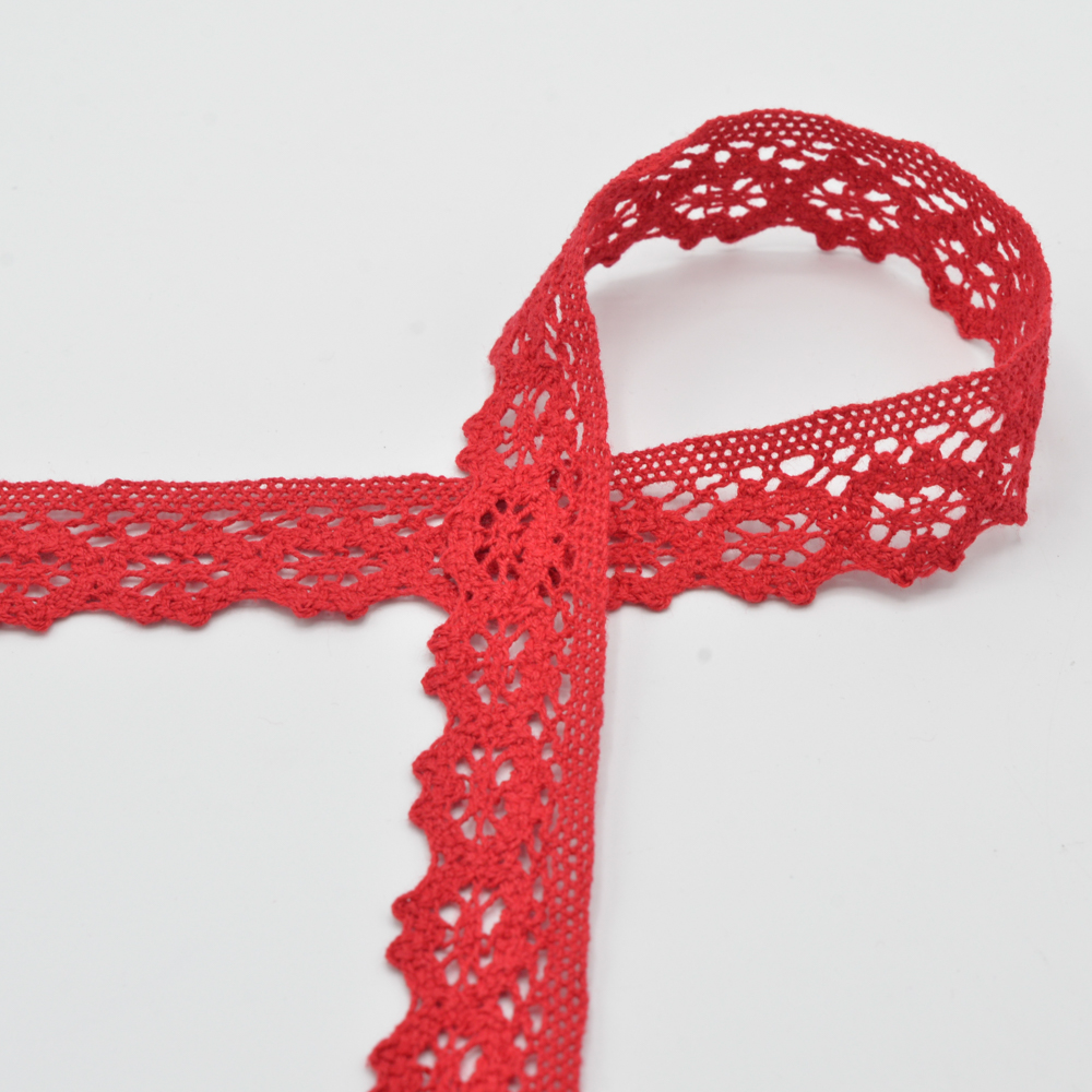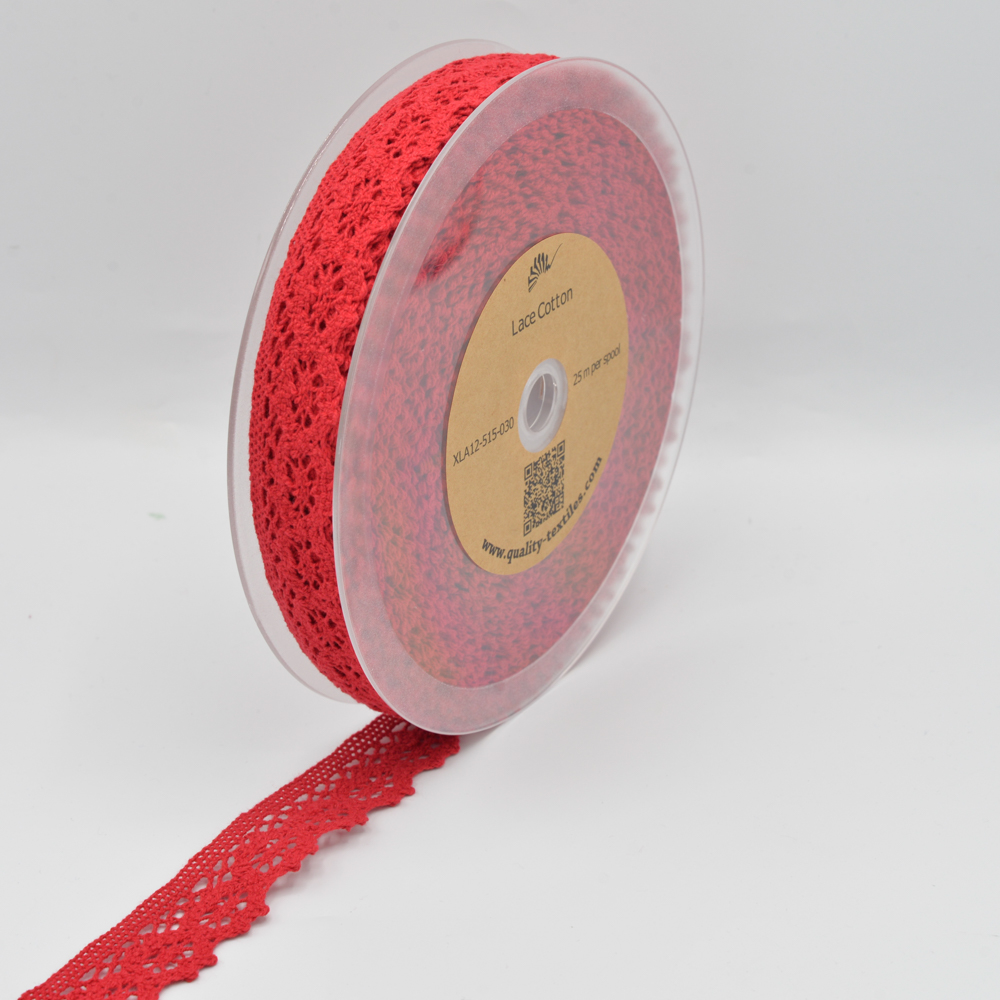 Spetsband av bomull - metervara - Röd-30 mm