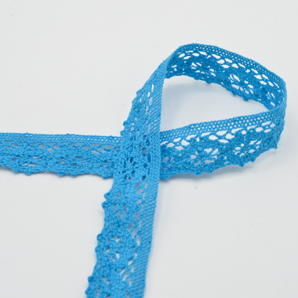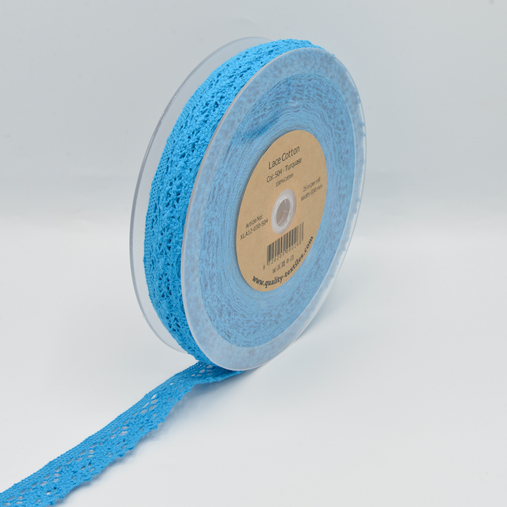 Den ljusa turkosa nyansen påminner om sommarens friskhet och ger en livlig färgklick till både ljusa och mörka bakgrunder. Oavsett om det är som en dekorativ avslutning, delikat utsmyckning eller färgstark detalj - detta spetsband förvandlar enkla idéer till riktiga blickfång.