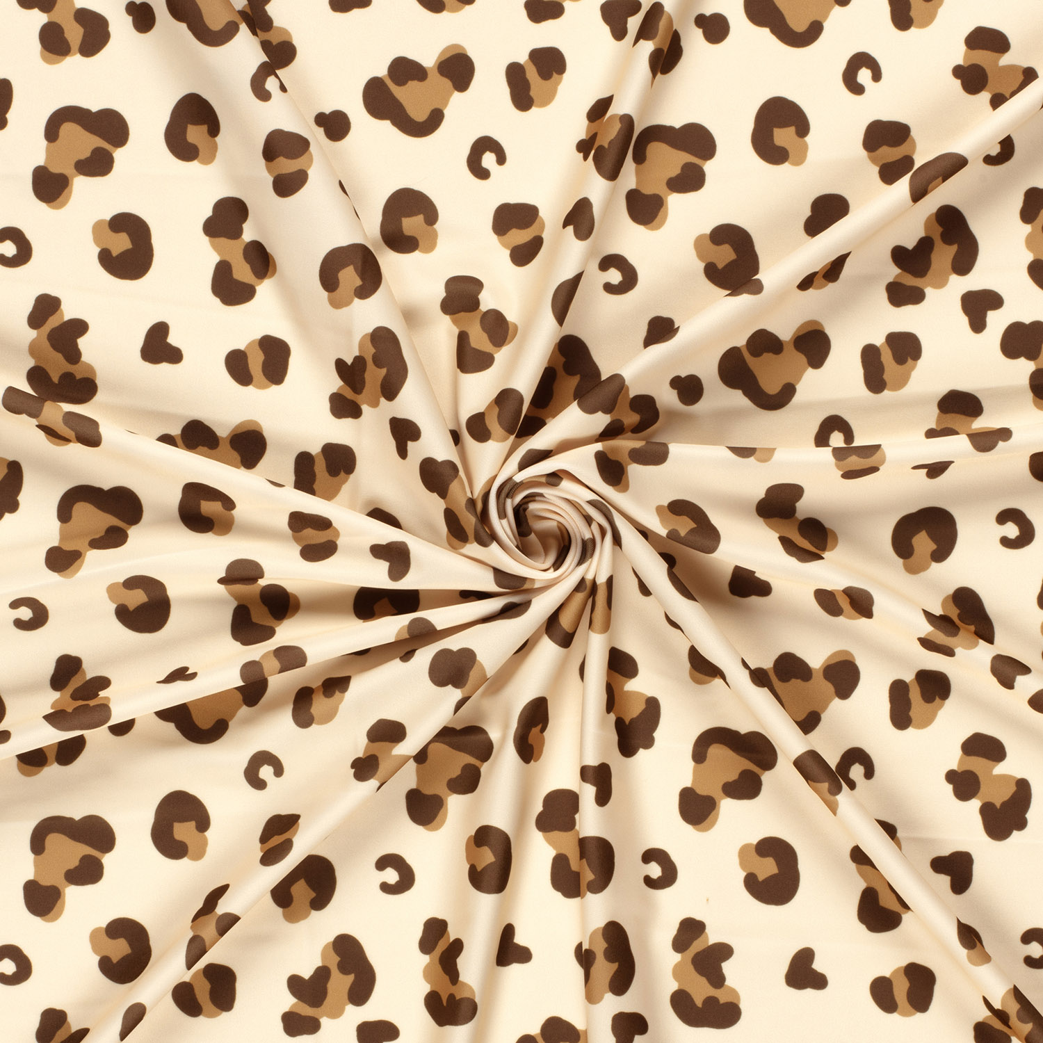 Detta sport- och badtyg kombinerar en stilren Leo-look med genomtänkt solskydd. Det moderna Leo-mönstret visas i mjuka beige- och krämtoner, kompletterat med fina mörkare fläckar – ett elegant djurprint som är både diskret och uttrycksfullt. På produktbilden kan du se hur de varma naturliga tonerna harmoniserar och ger tyget en lyxig, tidlöst modern look.