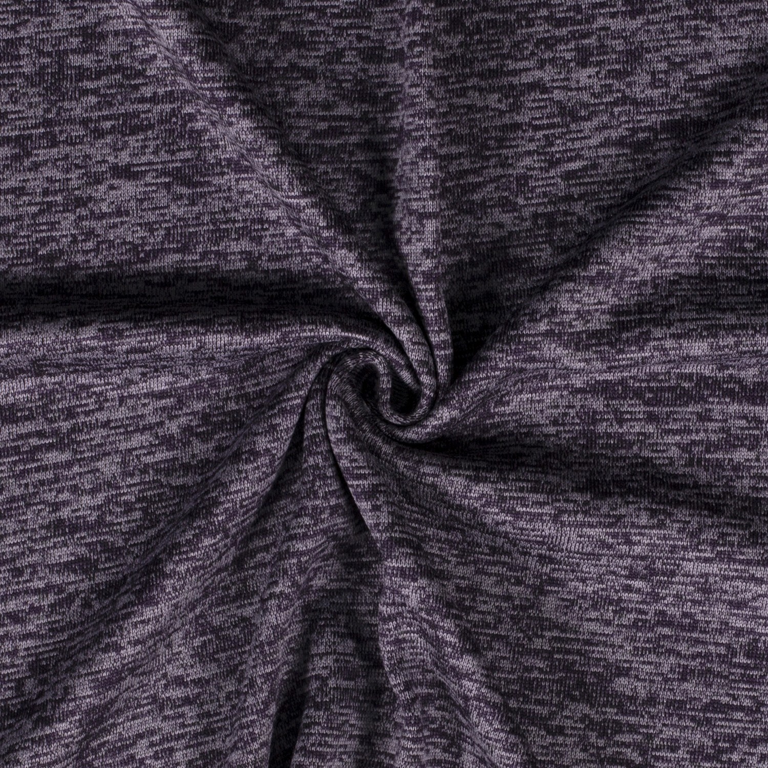 Mysig, modern och underbart mångsidig: denna stickade fleece i ljusgrått/aubergine melange kombinerar den avslappnade looken av en stickad tröja med fleecevärmens bekvämlighet. Den fina melangestrukturen i ljusgrått och djup aubergineton ger tyget en elegant, lugn utstrålning som är lätt att kombinera.