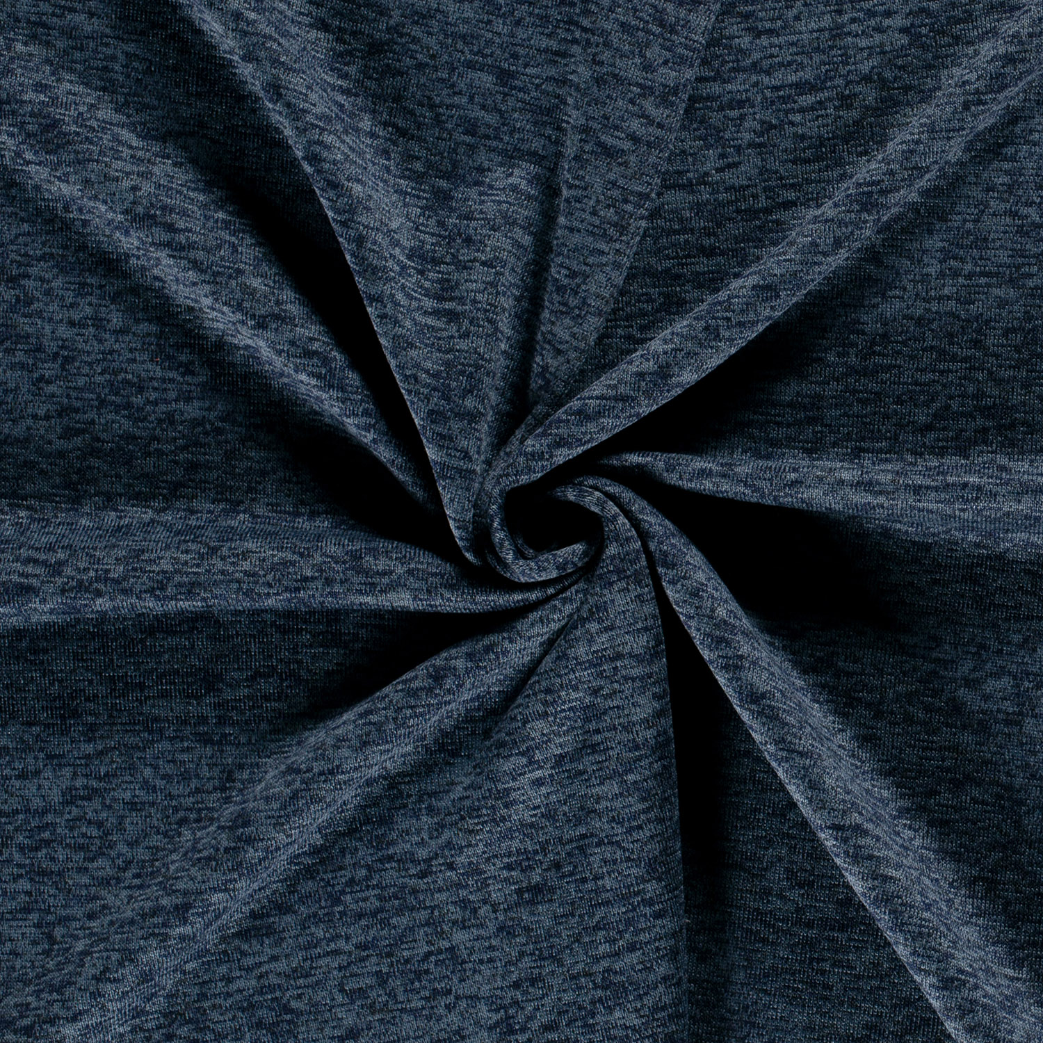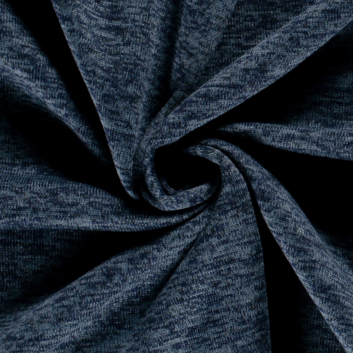 Denna stickade fleece kombinerar mysig värme med återhållen elegans: den melerade ytan i rökblått och djup marin skapar en ädel, lätt ullig look som genast påminner om mysiga vinterdagar.