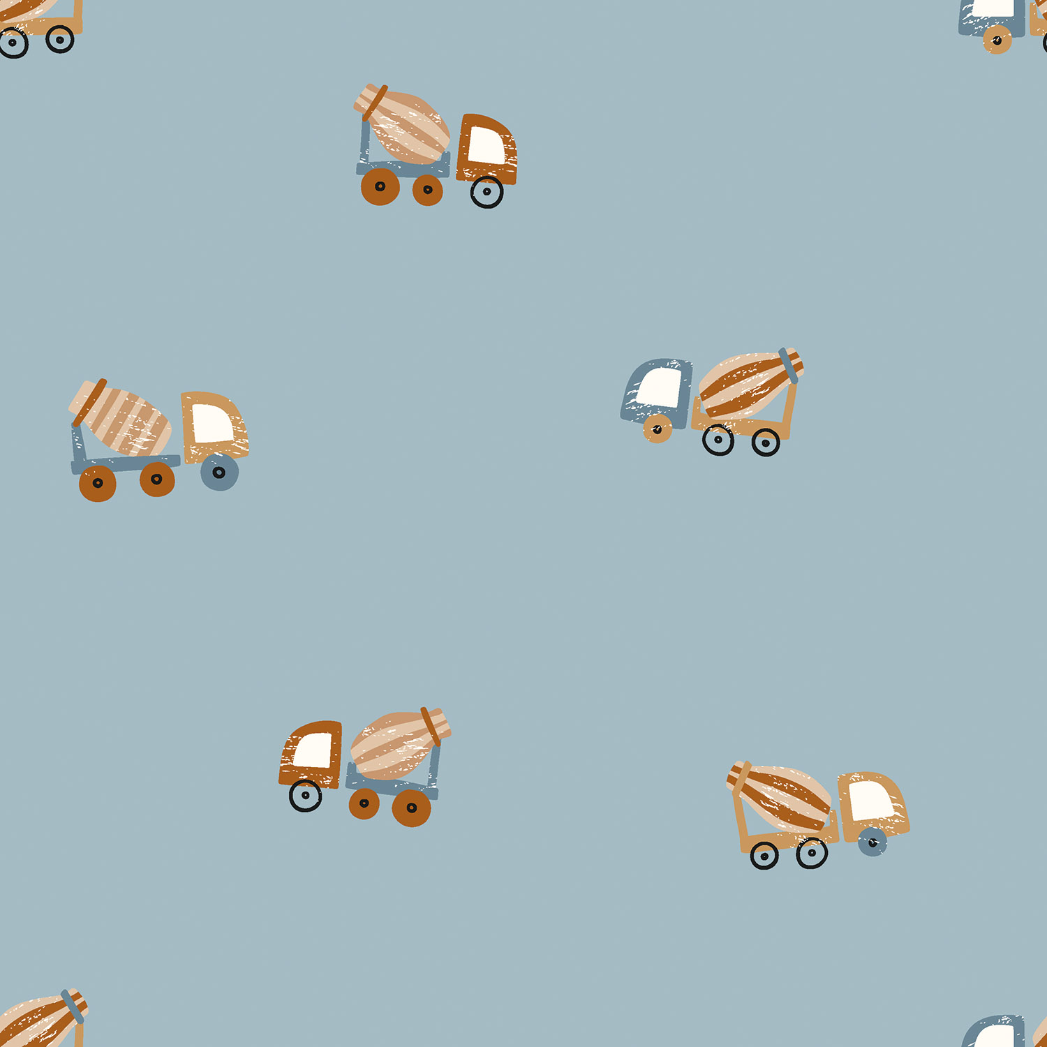 Det här regnjackstyget förvandlar alla halkiga väder till ett äventyr: färgglada lastbilar rullar förbi på en ljusblå bakgrund - i rött, gult, blått och andra starka färger. De barnvänliga fordonen är kärleksfullt tecknade och får omedelbart alla på gott humör, även under gråa regniga dagar.