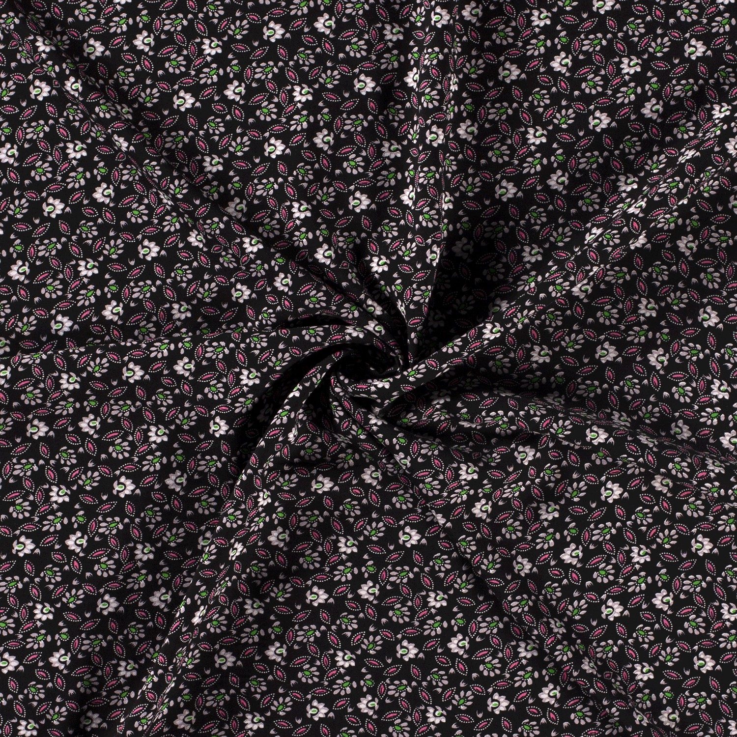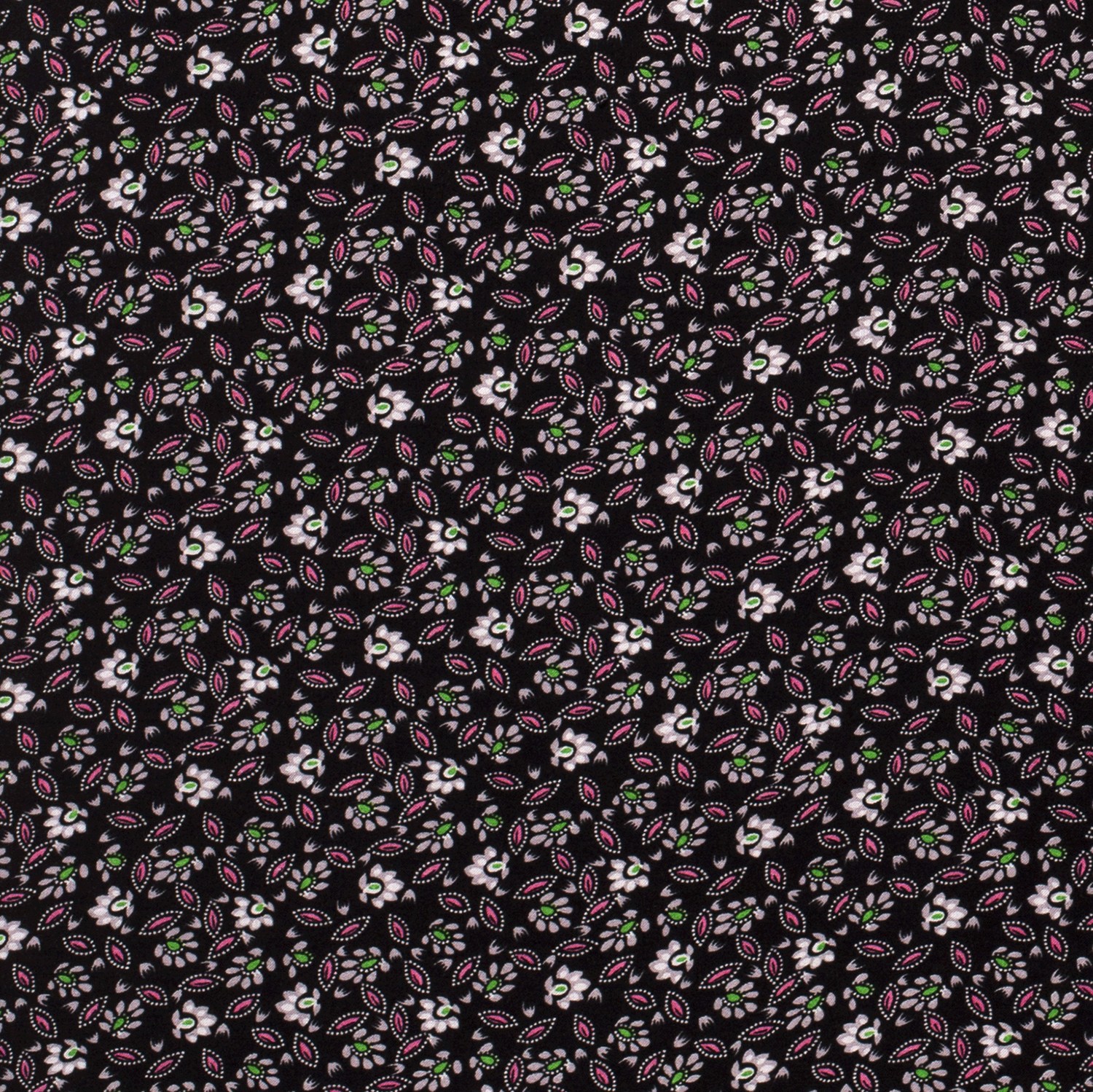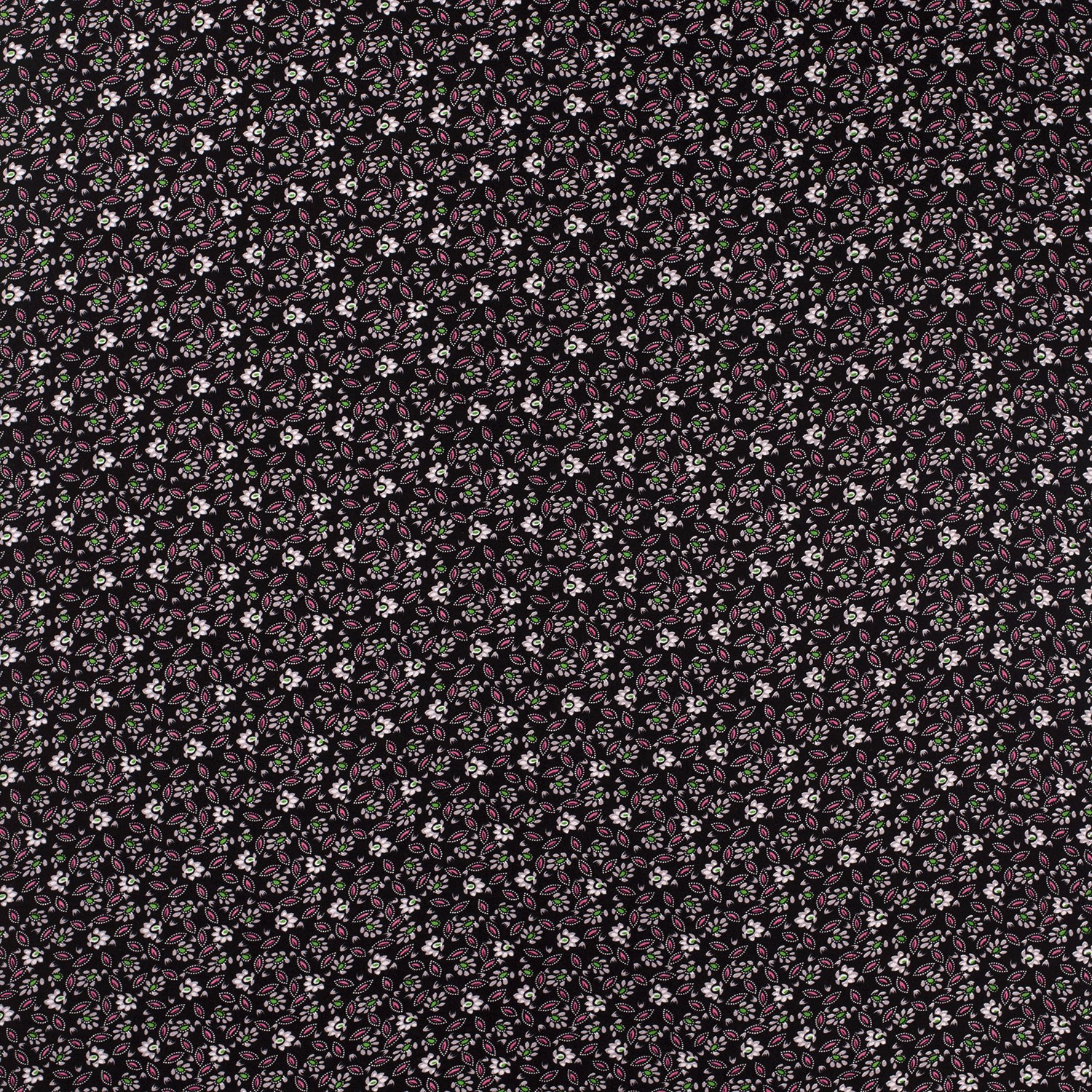 Viskos blusväv Små blommor vitt på ljusgrått/svart
