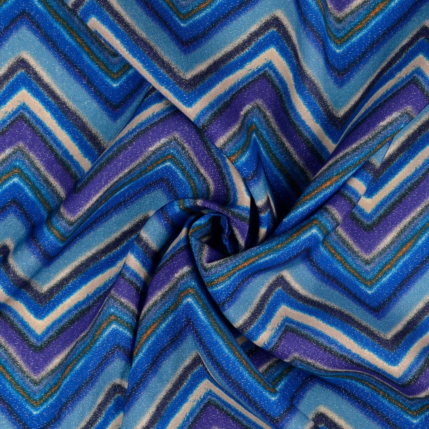 Viskos - Digitaltryck Zigzag Lurex blå