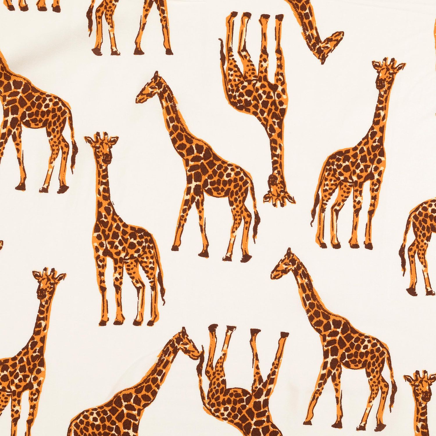 På detta mjukt vita tyg promenerar eleganta giraffer i mjuka, varma bruna toner. De fina konturerna och omsorgsfullt utarbetade detaljer på djuren ger designen en stilfull och samtidigt lekfull känsla.