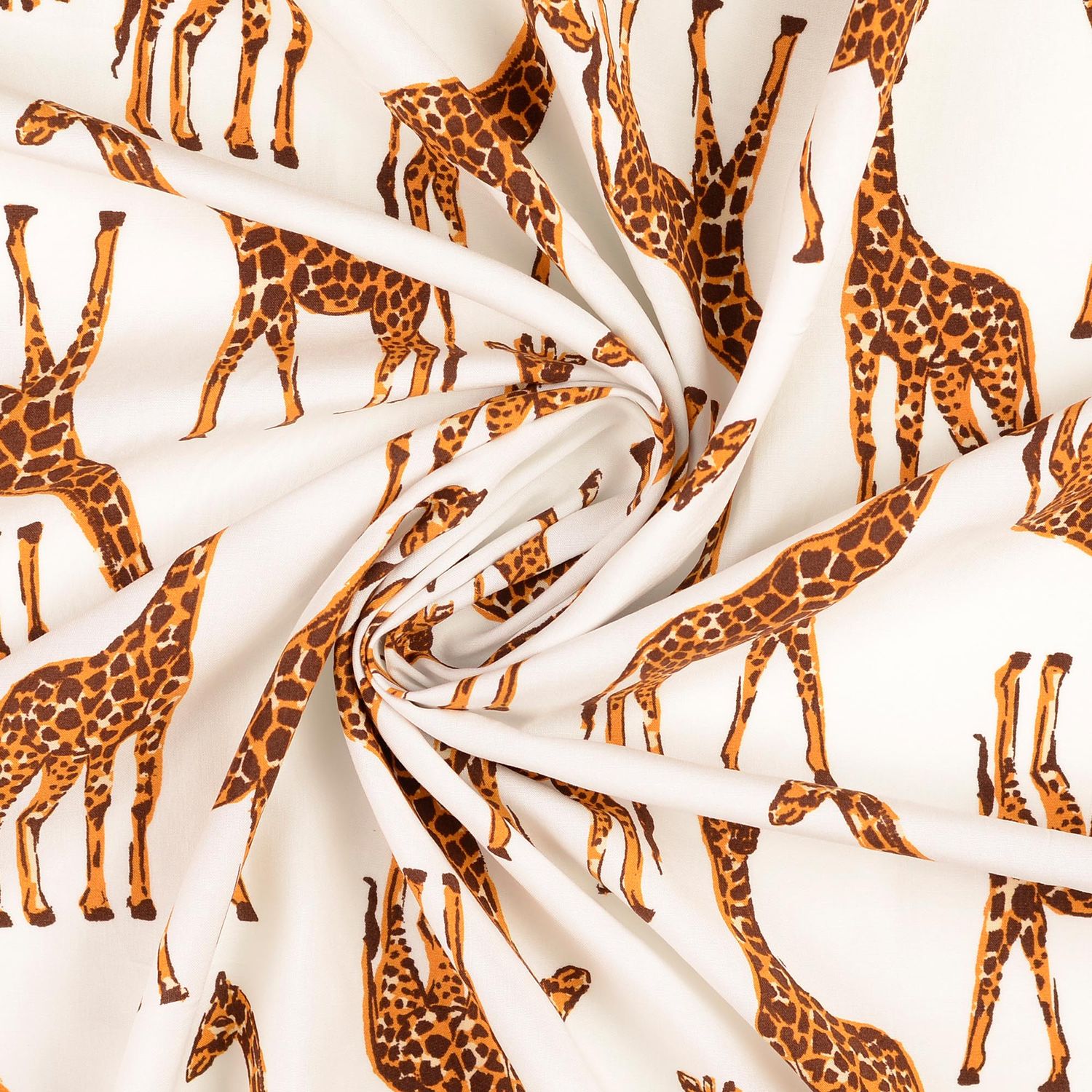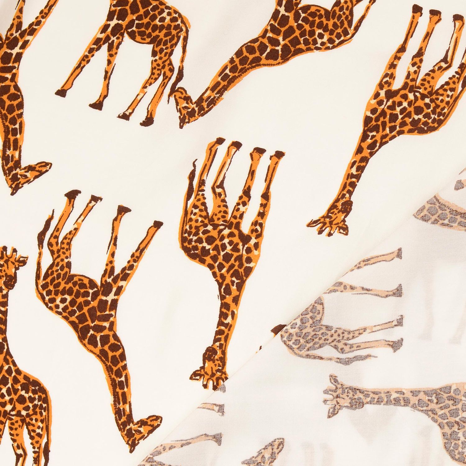 Den ljusa bakgrunden framhäver girafferna vackert och skapar en lätt och vänlig utstrålning – perfekt för sommarblusar, luftiga klänningar, kjolar eller söta barnkläder. Även accessoarer som sjalar, hårband eller lätta gardiner blir med detta motiv en charmig blickfångare.